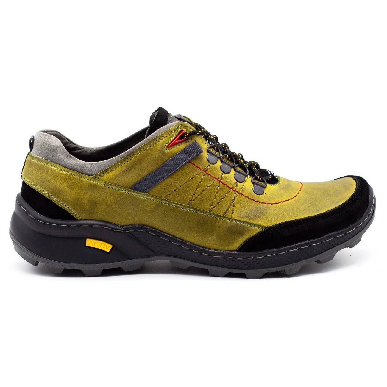 Stilvolle und bequeme Herrenschuhe mit einem Trekking -Schnitt, der täglich und auf kürzeren Reisen funktioniert. Das äußere obere Obermaterial aus Getreide, das natürliches Leder besteht, garantiert ein elegantes Aussehen und eine einfache Reinigung, und der Ledereinsatz sorgt für die richtige Luftzirkulation im Schuhe. Die leichte, flexible Sohle passt sich der Form des Fußes an, was den ganzen Tag zu hohen Komfort führt.