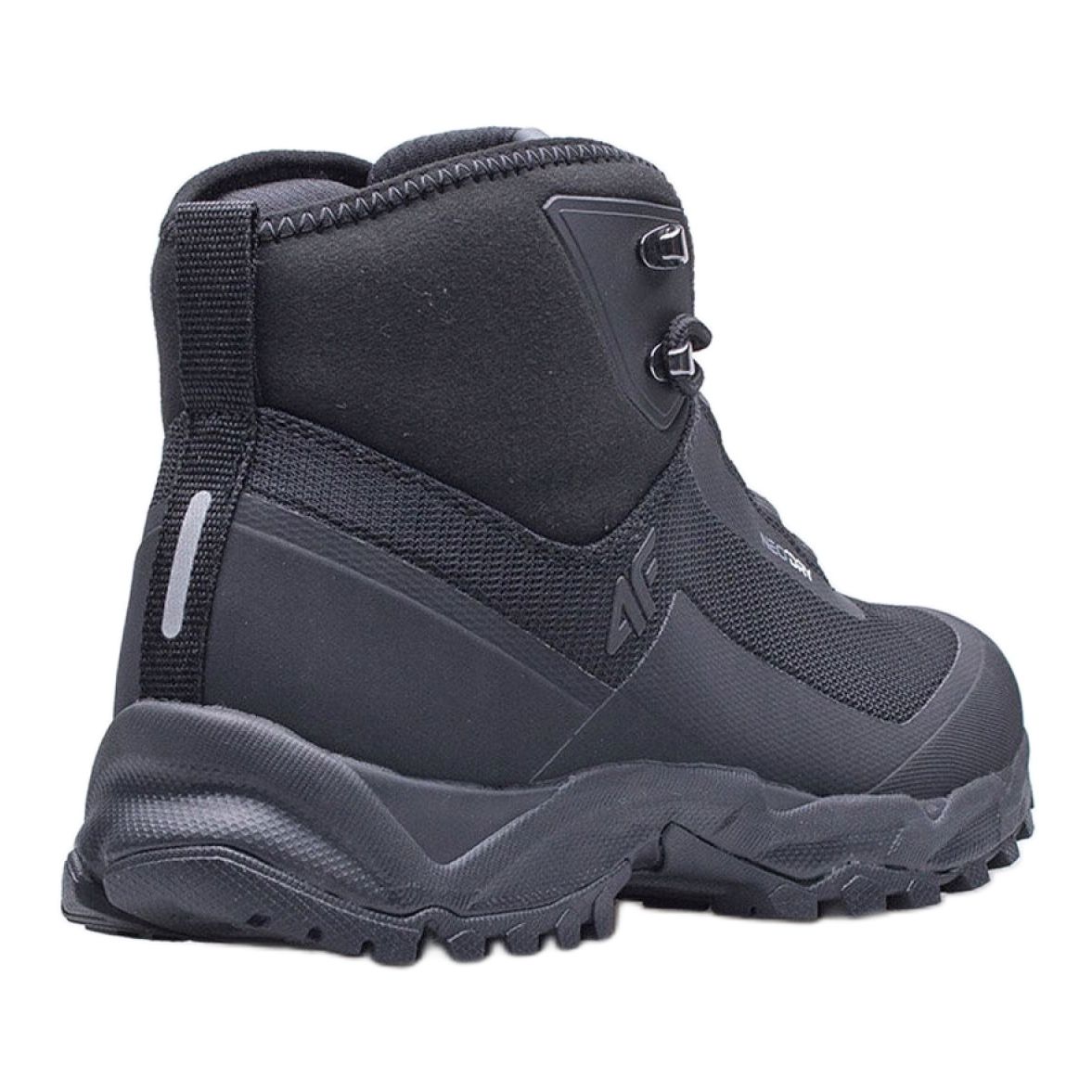 Wir präsentieren Herrenschuhe 4F Hiker M D4Z20-OBMH101 20S in elegantem Schwarz, die sich perfekt für Tourismus und Outdoor-Aktivitäten eignen. Diese hohen, bequemen Sportschuhe vereinen modernen Stil und Funktionalität und sind somit die ideale Wahl für aktive Männer.