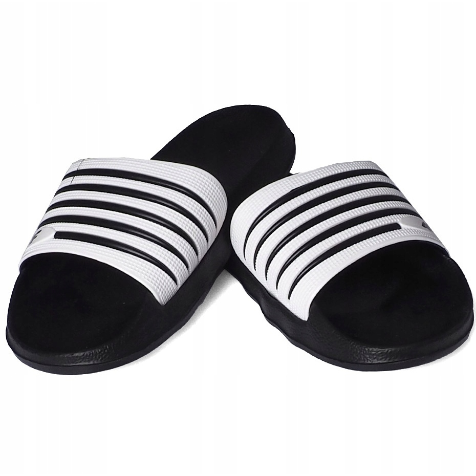 Klassische, komfortable 4F -Frauen -Hausschuhe, perfekt für den Sommer - zum Spaziergang, über den Pool oder zum Strand. Ein einfacher, funktionaler Schnitt mit kontrastierenden Streifen in Schwarzweiß passt zu vielen Sommerstilisierungen.