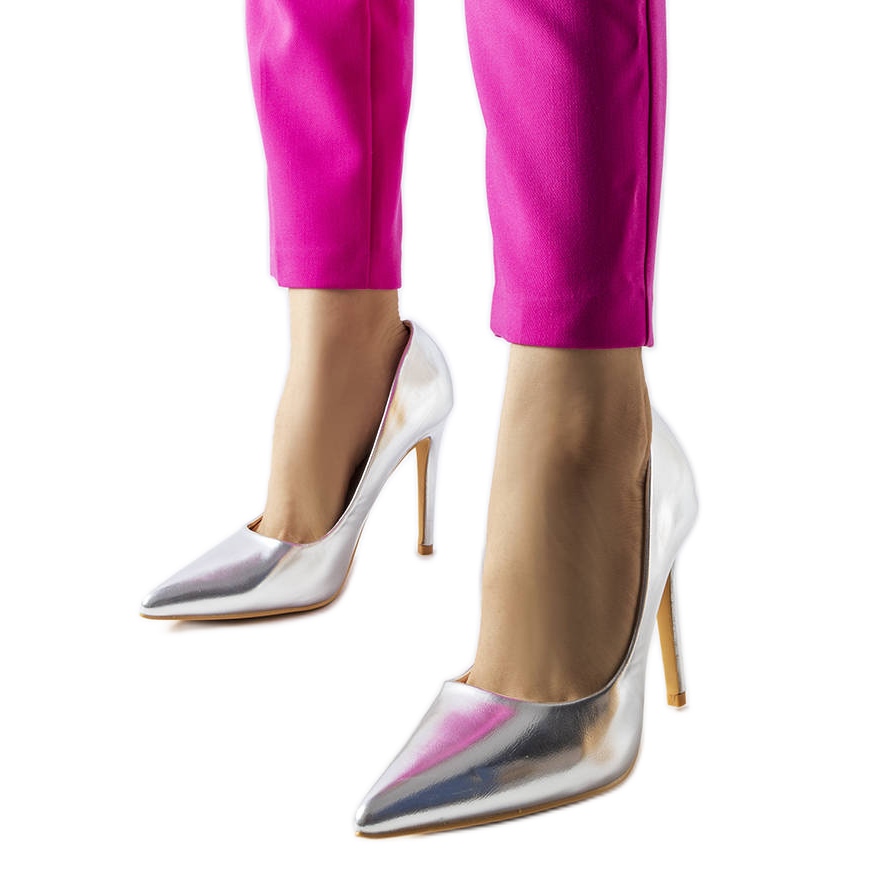 Elegante Sommerpumpen rutschten mit einer glänzenden, metallischen Oberfläche - ideal, wenn Sie eine ausgeprägte Akzentstilisierung hinzufügen möchten. Der schlanke Spitz und die High Heel betonen die weibliche Figur, und sofortig wird sie jeden Tag und für besondere Anlässe praktisch und für besondere Anlässe praktisch.