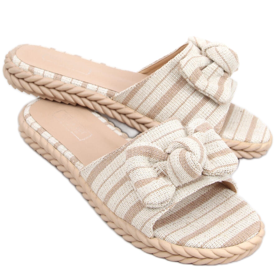 Adana Apricot Damen-zehenstegsandalen in Beige sind die perfekte Wahl für Sommertage! Diese stylischen zehenstegsandalen mit flacher Sohle vereinen Funktionalität mit modischem Design. Dank einer schönen Schleife vorne und einem originellen Streifenmuster sind sie eine perfekte Ergänzung zu jedem Sommer-Styling und verleihen ihm Leichtigkeit und Romantik.