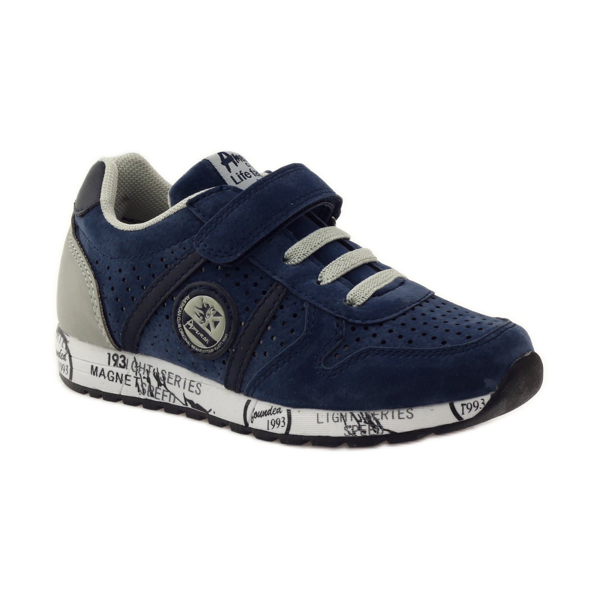 Wir präsentieren die Sportschuhe American Club, Modell ADI (Modell 2715), die eine ausgezeichnete Wahl für jeden jungen Sportler sind. Diese marineblauen und grauen Sneaker wurden im Hinblick auf Komfort und Sicherheit entworfen und eignen sich perfekt für die alltäglichen Abenteuer Ihres Kindes.