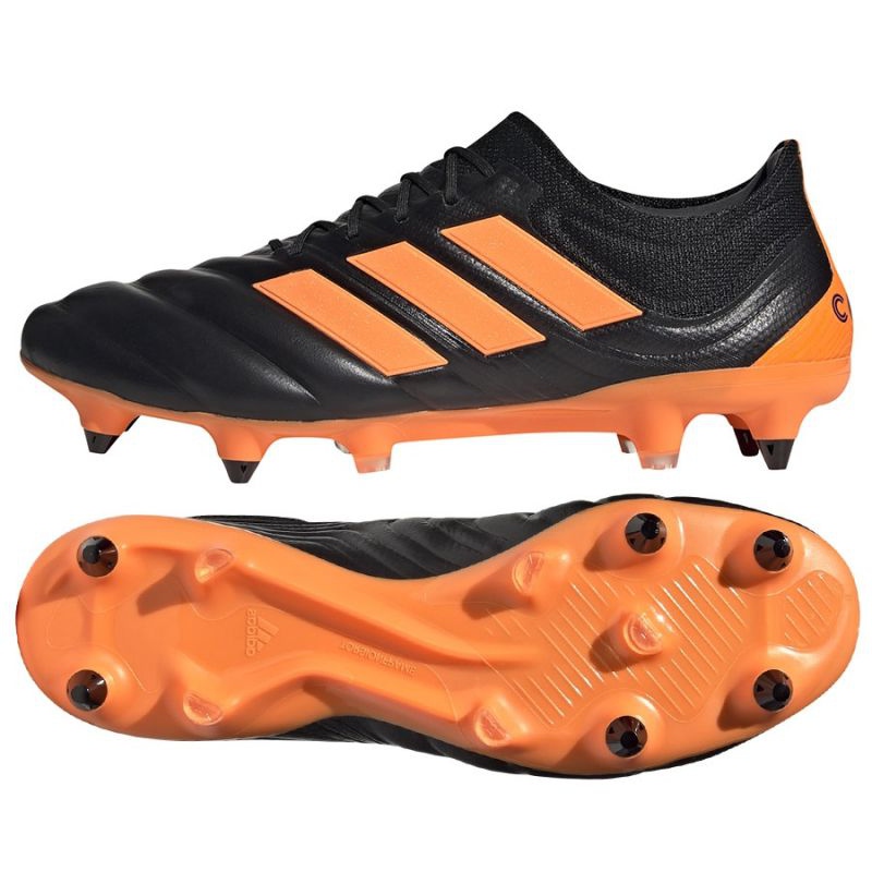 Die adidas Copa 20.1 Sg M EH0890 Fußballschuhe sind eine ausgezeichnete Wahl für Männer, die auf dem Spielfeld Qualität und Stil suchen. Diese mehrfarbigen Schuhe aus hochwertigem Naturleder in Schwarz- und Orangetönen vereinen modernes Design mit klassischen Lösungen.