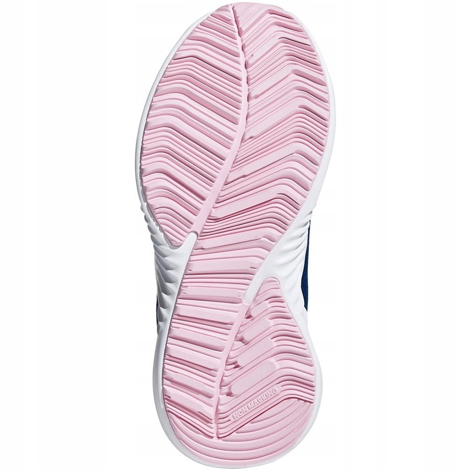 Moderne Adidas Forarun X -Schuhe (Modell D96948) in einem dunkelblauen Farbton mit rosa Akzenten ist ein Vorschlag für Frauen und Jugendliche, die nach leichten, atmungsaktiven Stadtschuhen suchen. Das Obermaterial mit einem atmungsaktiven Netz lüftet während der Aktivität belüftet, und die klassische Schnürung garantiert einige Anpassungen.