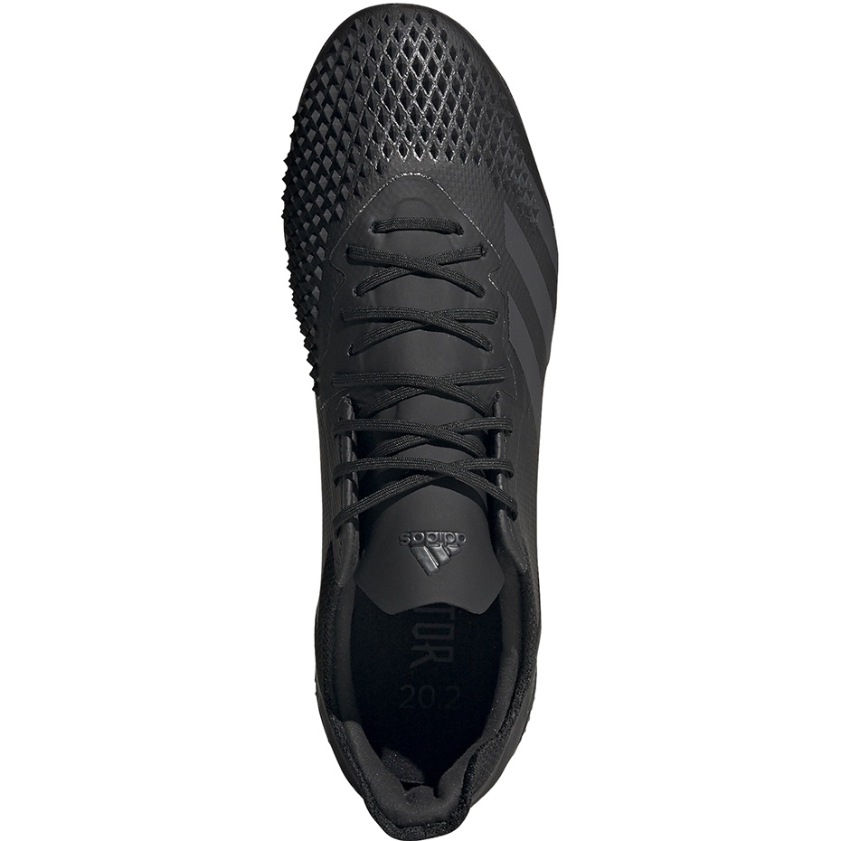 Semi -Professional Adidas Predator 20.2 Staus aus der Mutator Pack Collection ist ein Vorschlag für Spieler, die dank der exzellenten Ballkontrolle das Spielfeld dominieren möchten. Ein monochromes schwarzes Modell mit dunkelgrauen Streifen kombiniert ein modernes Design mit funktionellen Lösungen - empfohlen für das Spielen auf natürlichen Oberflächen (FG). Die Linie wird von Paul Pogba gefördert.
