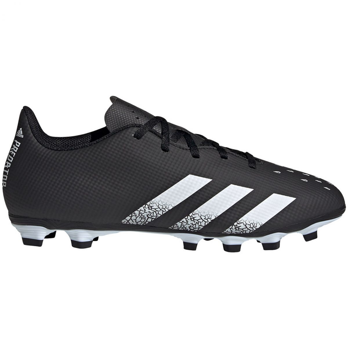 Wir präsentieren die adidas Predator Freak.4 FxG M FY1040 Fußballschuhe in einer attraktiven, mehrfarbigen Variante, bei der Schwarz mit weißen Akzenten dominiert. Diese hochwertigen Fußballschuhe wurden für Männer entwickelt, die beim Fußballspielen Wert auf Komfort und Stil legen.