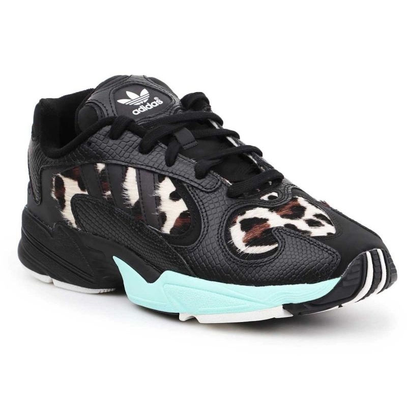Moderne, auffällige Turnschuhe adidas yung-1 fv6448 kombinieren Retro-Stil mit einem städtischen Charakter. Das schwarze Obermaterial aus Leder und synthetischem Material ist mit einem subtilen Muster mit Flecken dekoriert, das den Schuhen einen einzigartigen, originellen Look verleiht. Perfekt für tägliche Basis - für die Arbeit, für einen Spaziergang oder ein Treffen mit Freunden.