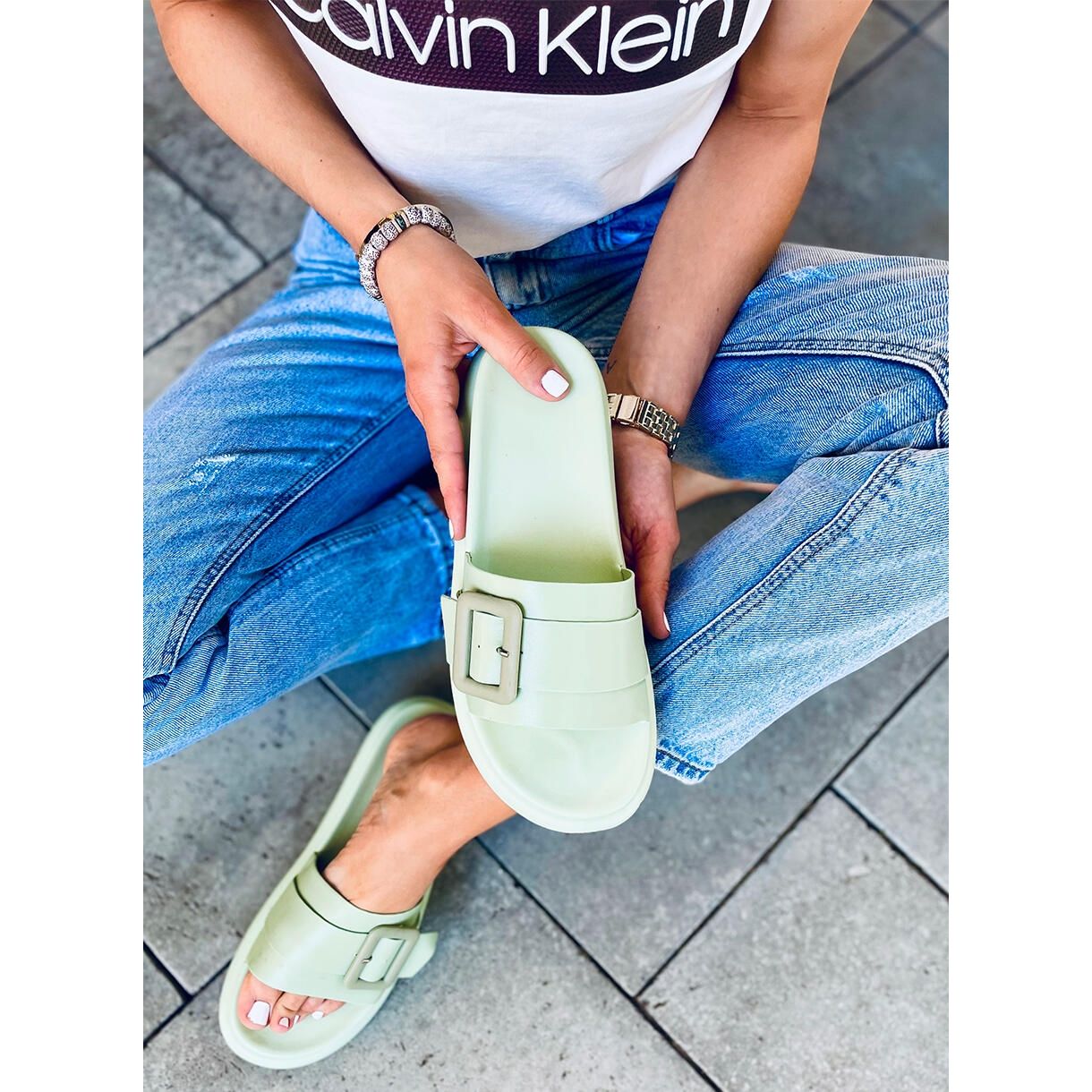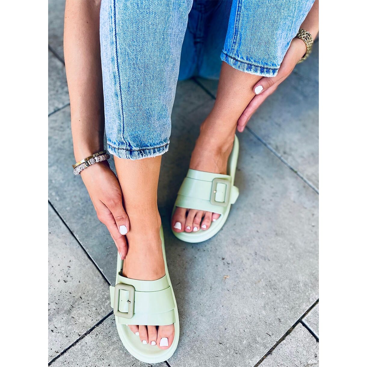 Entdecken Sie Komfort und modisches Design in den Damenhausschuhen von Alana Verde im Grünton! Diese stilvollen zehenstegsandalen zeichnen sich durch eine hohe Sohle und eine attraktive Schnalle aus, die ihnen Charakter verleiht. Sie verfügen über einen breiten Riemen, der den Fuß perfekt umschließt, was das Tragen unvergleichlich macht und jeden Schritt darin zu einem reinen Vergnügen macht.