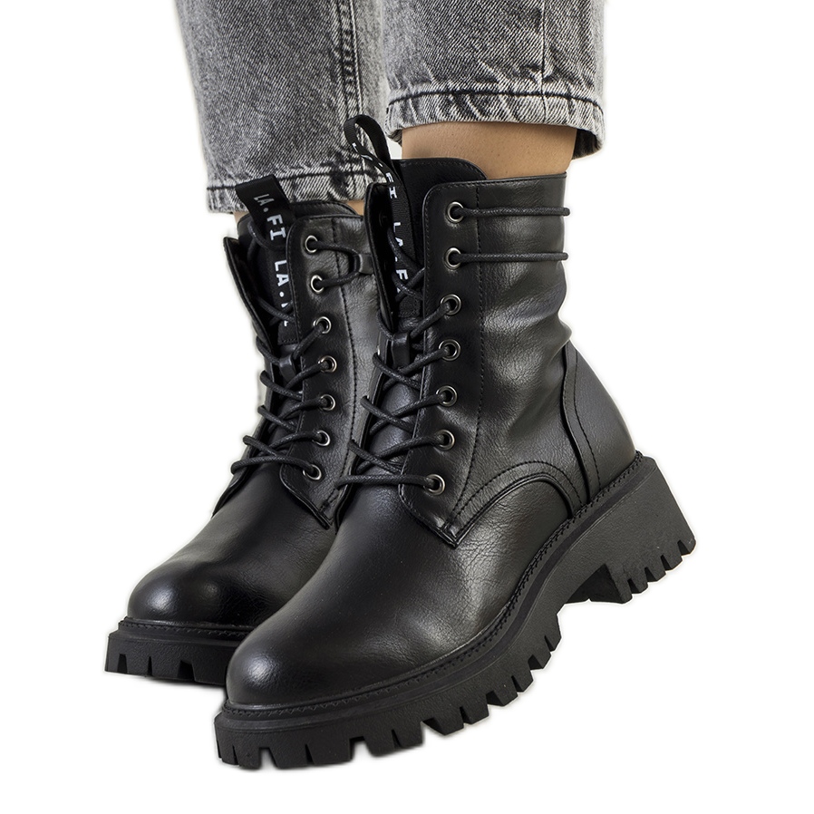 Aleidas klassische und modische Fallenlager gleichzeitig sind in dieser Saison ein Muss. Ein elegantes, schwarzes ökologisches Lederobermaterial bietet ein dauerhaftes Aussehen und eine einfache Pflege, und das Innenraum mit einem weichen, isolierten Fell garantiert auch an kühleren Tagen Komfort. Das Modell kombiniert die Praktikabilität mit einem modischen Design - Schnürung zur Anpassungsanpassung und einem Schloss, das die Annahme erleichtert.