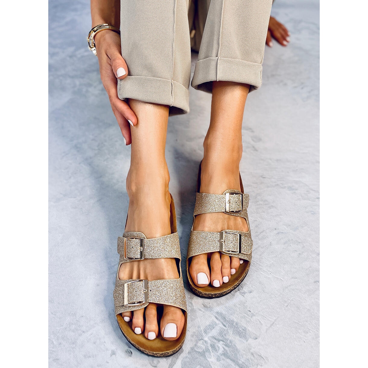 Inna marka Alexa Gold-Glitzer-Kork-Hausschuhe golden