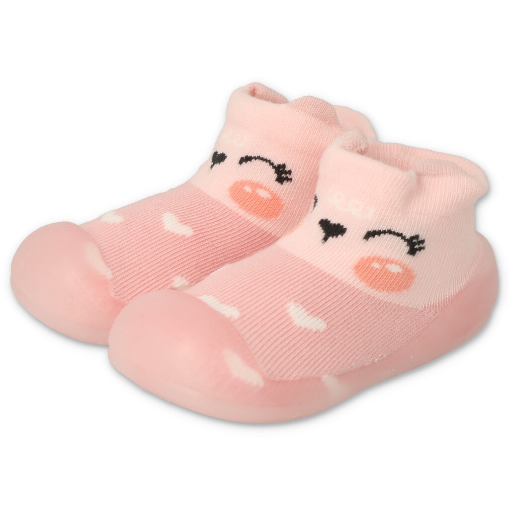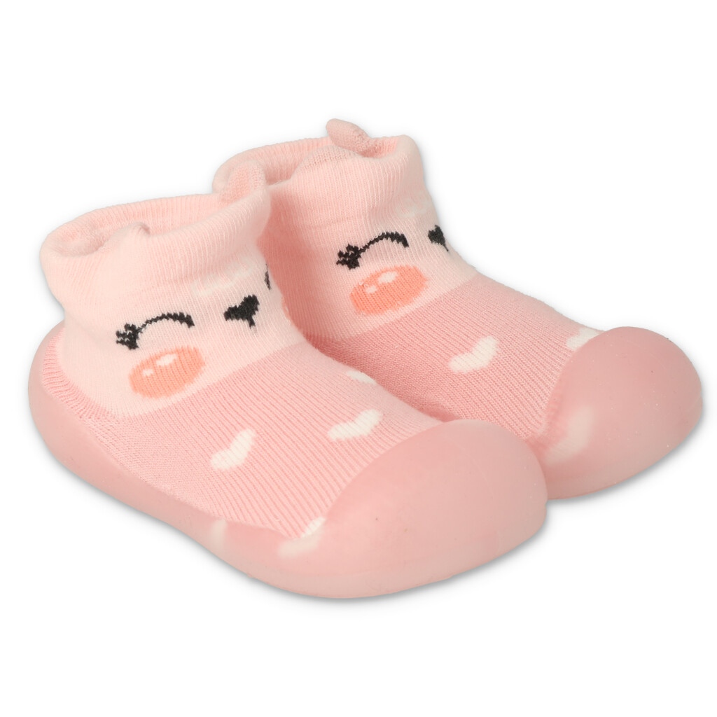 Es lohnt sich, auf das bezaubernde Tiermotiv auf den rutschfesten Schuhen zu achten, das perfekt zur rosa Farbe der Schuhe passt und eine zusätzliche Dekoration und Anziehungskraft für das Kind darstellt. Jedes Paar besteht aus hautfreundlichem Stoff und sorgt für eine gute Luftzirkulation, was für die Gesundheit der Füße in so jungen Jahren von entscheidender Bedeutung ist.