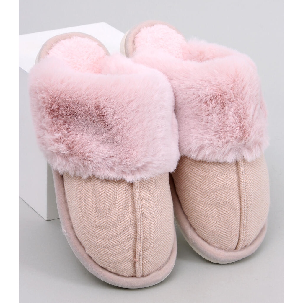 Inna marka Allens Puderrosa Hausschuhe mit Fischgrätenmuster und Fell