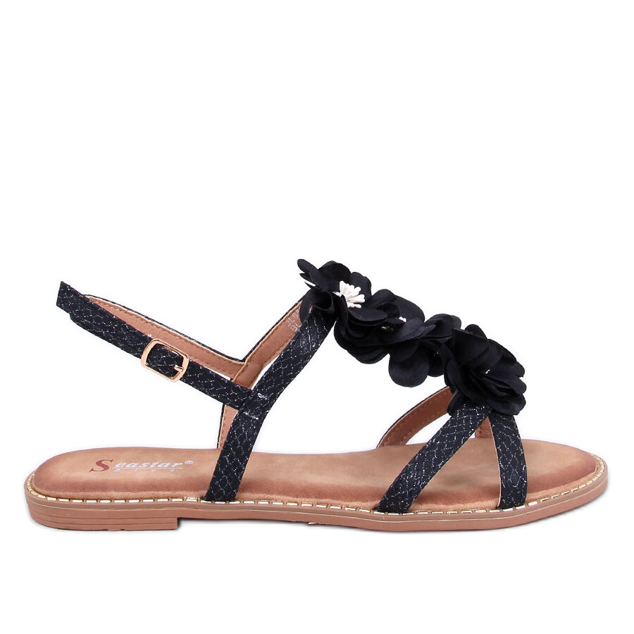 Inna marka Amaur Schwarze Sandalen mit zarten Blumen