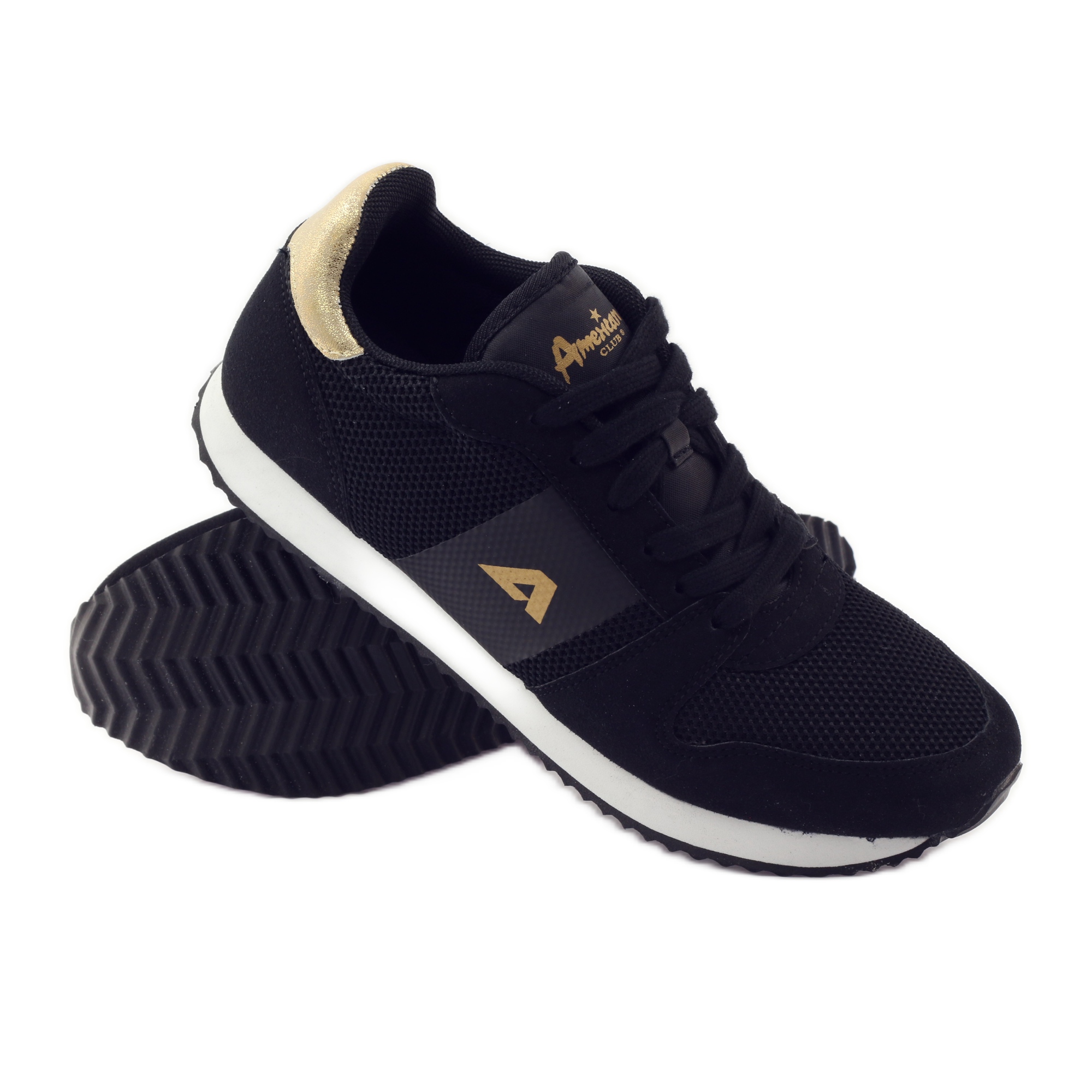 Die Damen-Sportschuhe von American Club, Modell 17022, sind die perfekte Wahl für Frauen, die Wert auf Komfort und Stil legen. Aus hochwertigem Textilmaterial in elegantem Schwarz gefertigt, mit einem Akzent in Form eines goldenen Absatzes, passen sie perfekt zu modernen Modetrends.