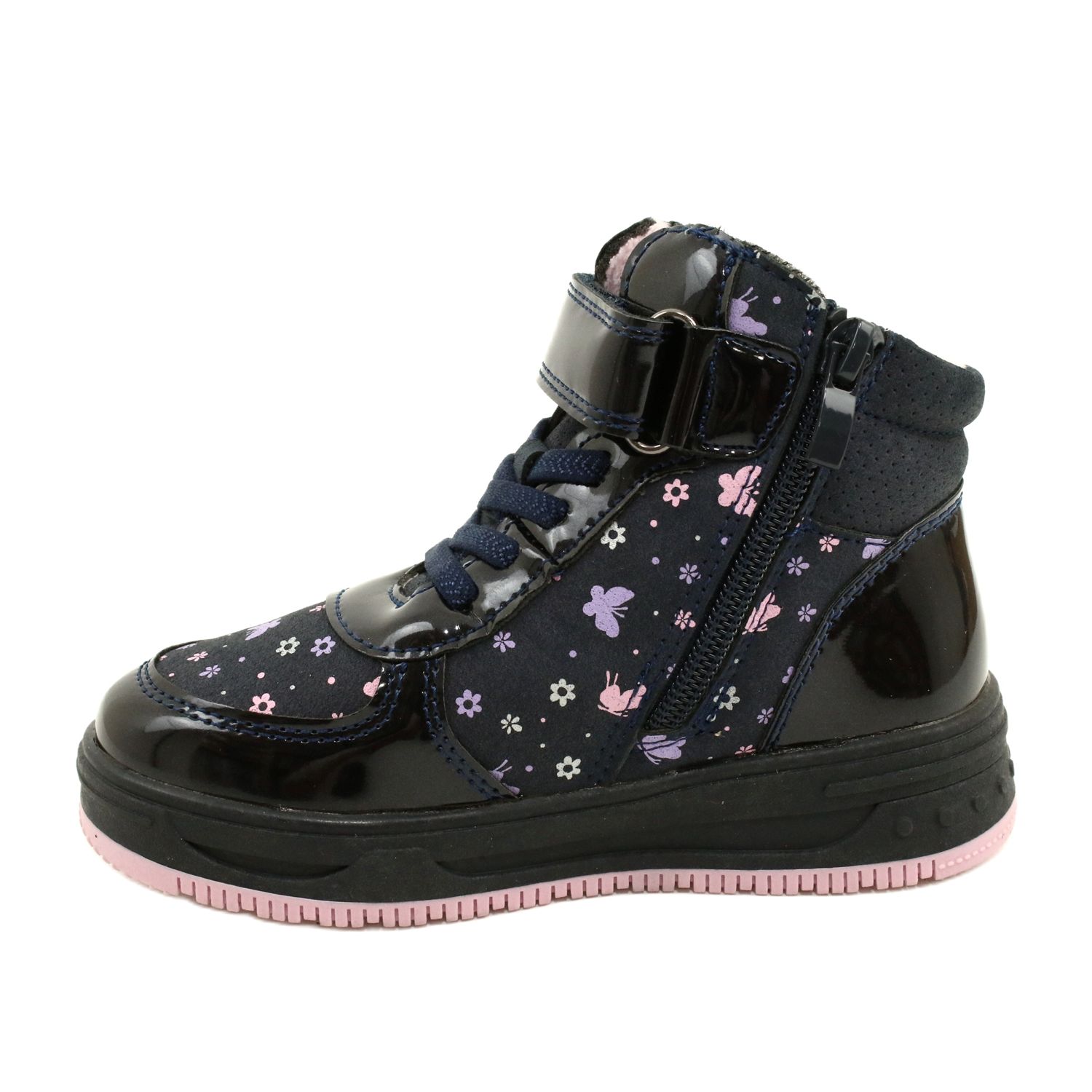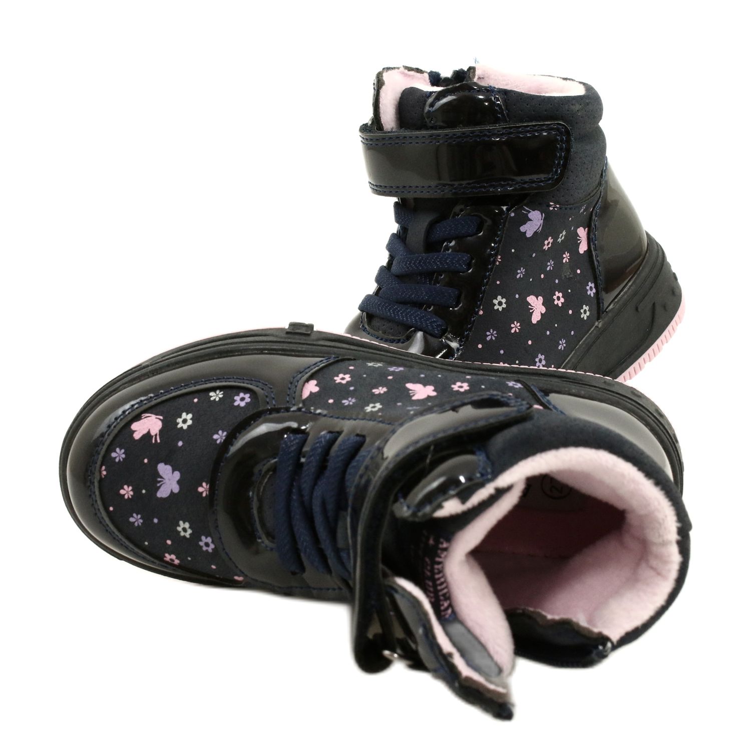 Wir präsentieren American Club Kinderschuhe, die Stil, Funktionalität und Komfort vereinen. Das Modell XD66, erhältlich in den wunderschönen Farben Marineblau und Rosa mit bezaubernden Verzierungen in Form von Blumen und Schmetterlingen, ist die perfekte Wahl für kleine Mädchen, die Wert auf einen modischen Look legen.