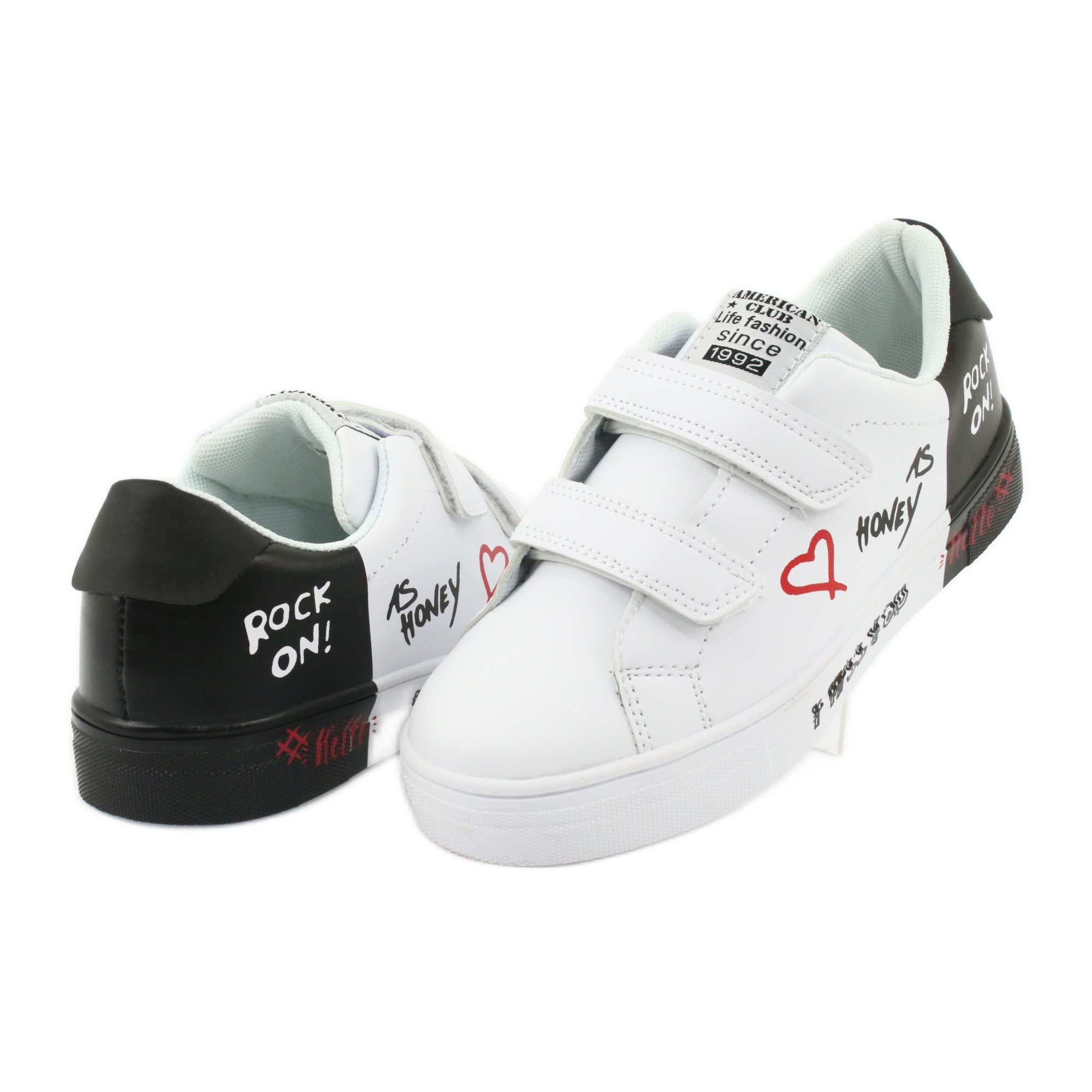 Die weißen und schwarzen Sport-Sneakers American Club ES05 sind die perfekte Wahl für aktive Mädchen, die Wert auf Komfort und einen modischen Look legen. Diese stilvollen Schuhe sind aus hochwertigem ökologischem Leder gefertigt, was nicht nur Haltbarkeit, sondern auch Gebrauchssicherheit gewährleistet. Dank des Textilmaterials im Inneren wird der Fuß ausreichend belüftet, was sich in Komfort bei alltäglichen Aktivitäten niederschlägt.