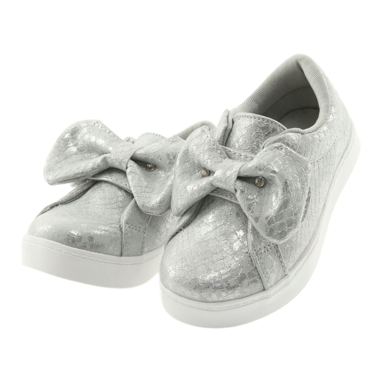 Entdecken Sie die außergewöhnlichen Sport-Sneaker AMERICAN CLUB ES23, die jeden kleinen Trendsetter begeistern werden! Ihr einzigartiges Design mit einer mit Pailletten verzierten Schleife macht sie zur perfekten Ergänzung für jedes Kinder-Styling. Sie bestehen aus ökologischem Leder, das an Schlangenhaut in einem eleganten Silberton erinnert, und vereinen Ästhetik mit Tragekomfort.