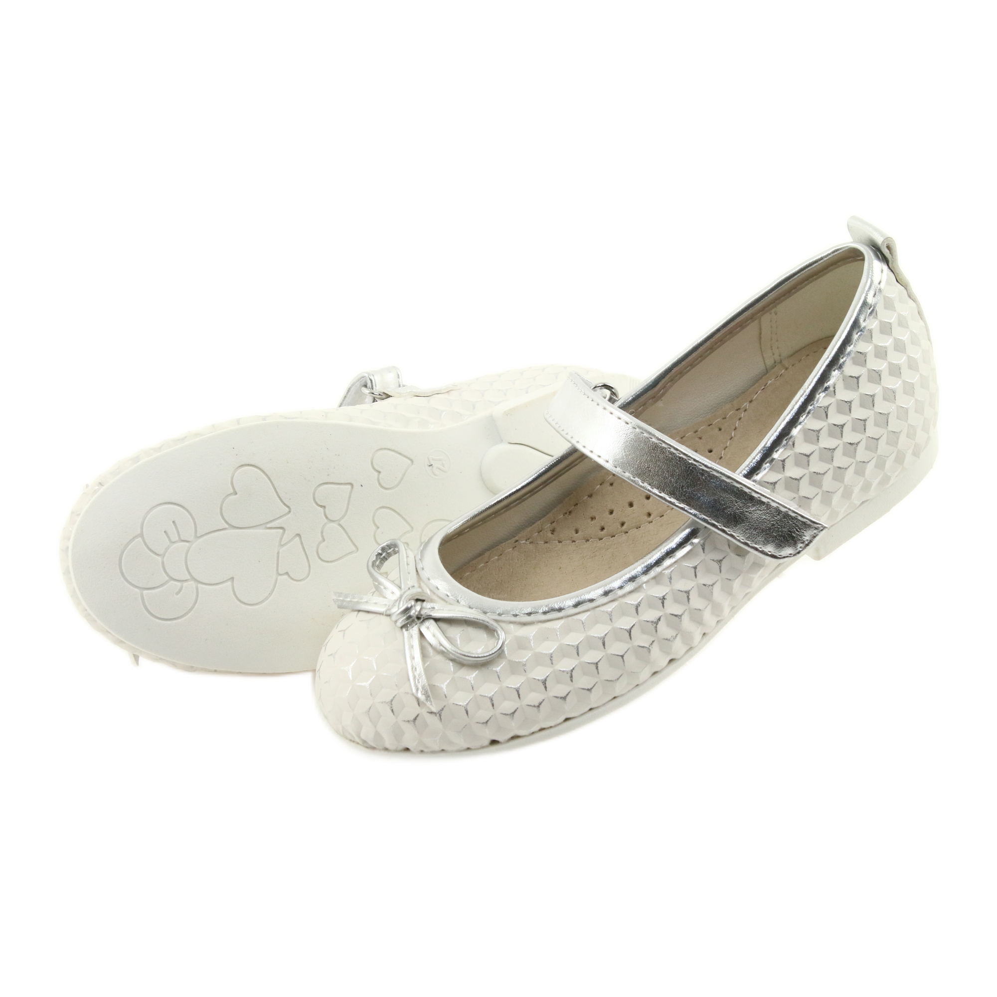 Die American Club GC16 Ballerinas mit Klettverschluss sind die perfekte Wahl für ein kleines Mädchen, das Komfort und Eleganz bei jedem Schritt schätzt. Diese Schuhe bestehen aus hochwertigem ökologischem Leder in einem stilvollen Weiß- und Silberton, wodurch sie für verschiedene Stile geeignet sind – sowohl für den Alltag als auch für elegantere.