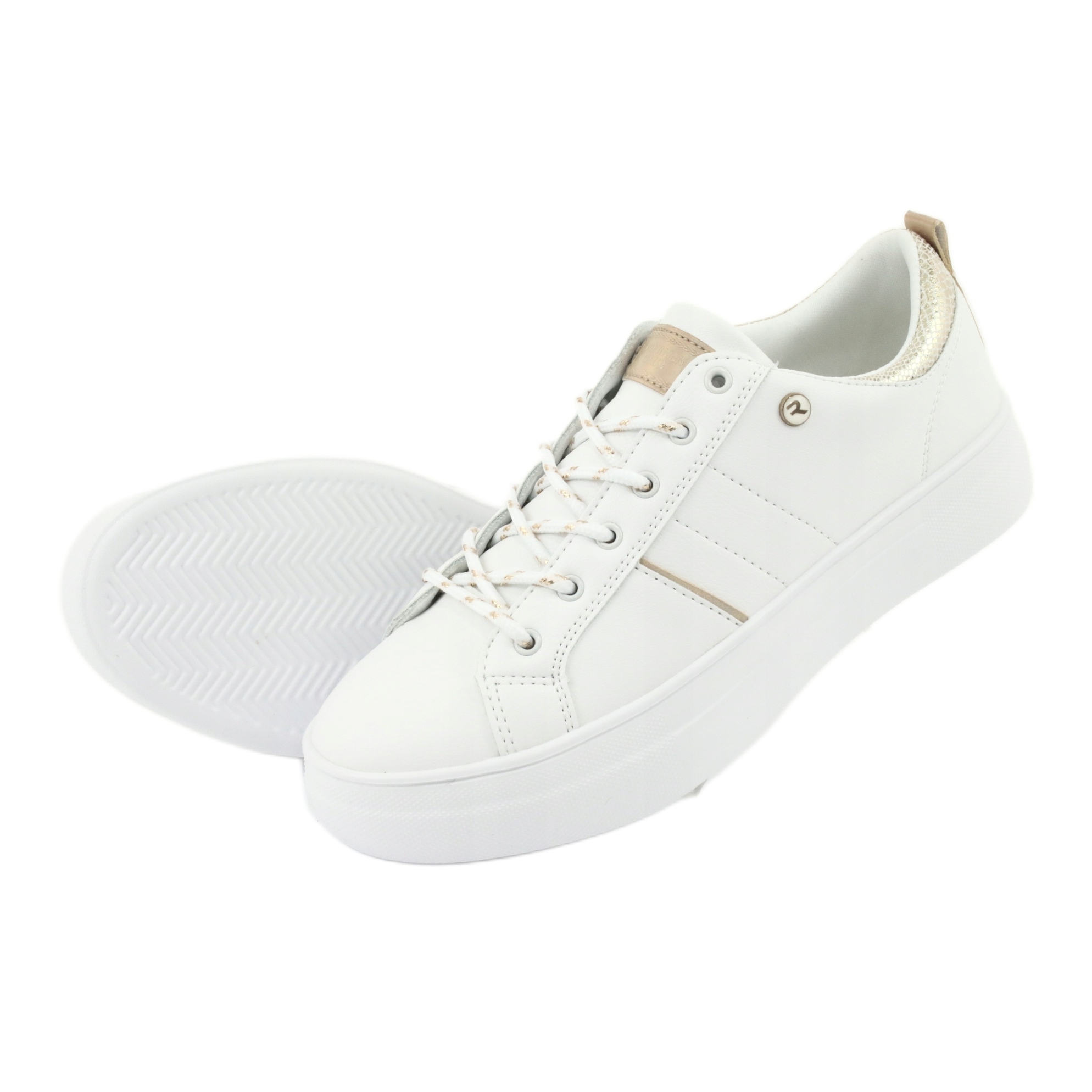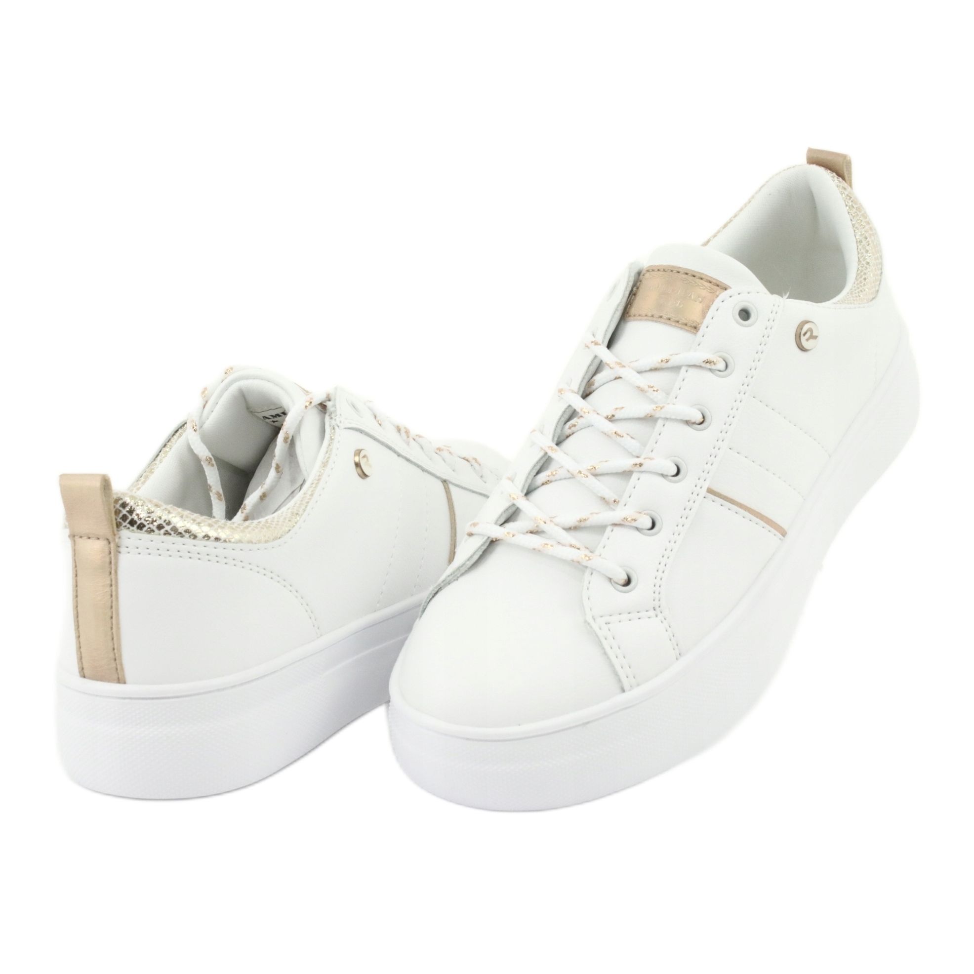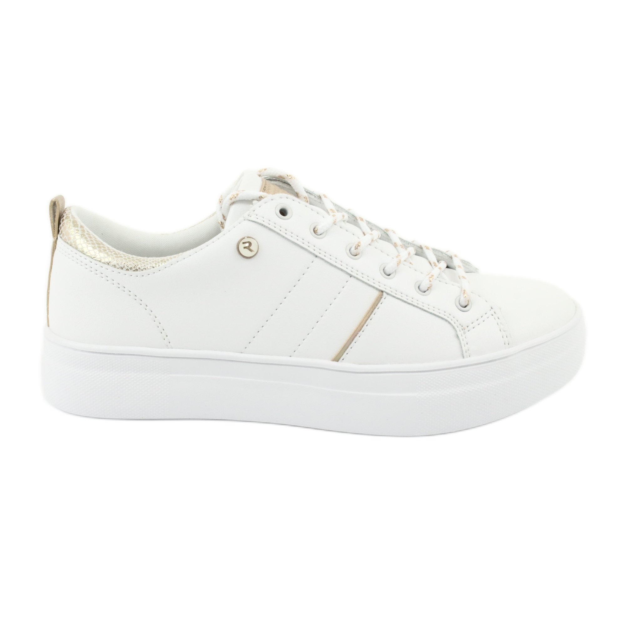 Moderne Sneaker für Frauen aus hochwertigem ökologischem Leder, die einen sportlichen Charakter mit modischen Details verbinden. Das RH09 -Modell zeichnet sich durch elegante goldene Einsätze und empfindliche gelbe Akzente aus, und das Innenraum ist mit weichem Stoff für Komfort beim Tragen ausgekleidet. Die Schuhe sind auf eine etwas dickere, weiße, sehr leichte und flexible Sohle eingebettet, was jeden Tag eine gute Polsterung und Komfort gewährleistet.