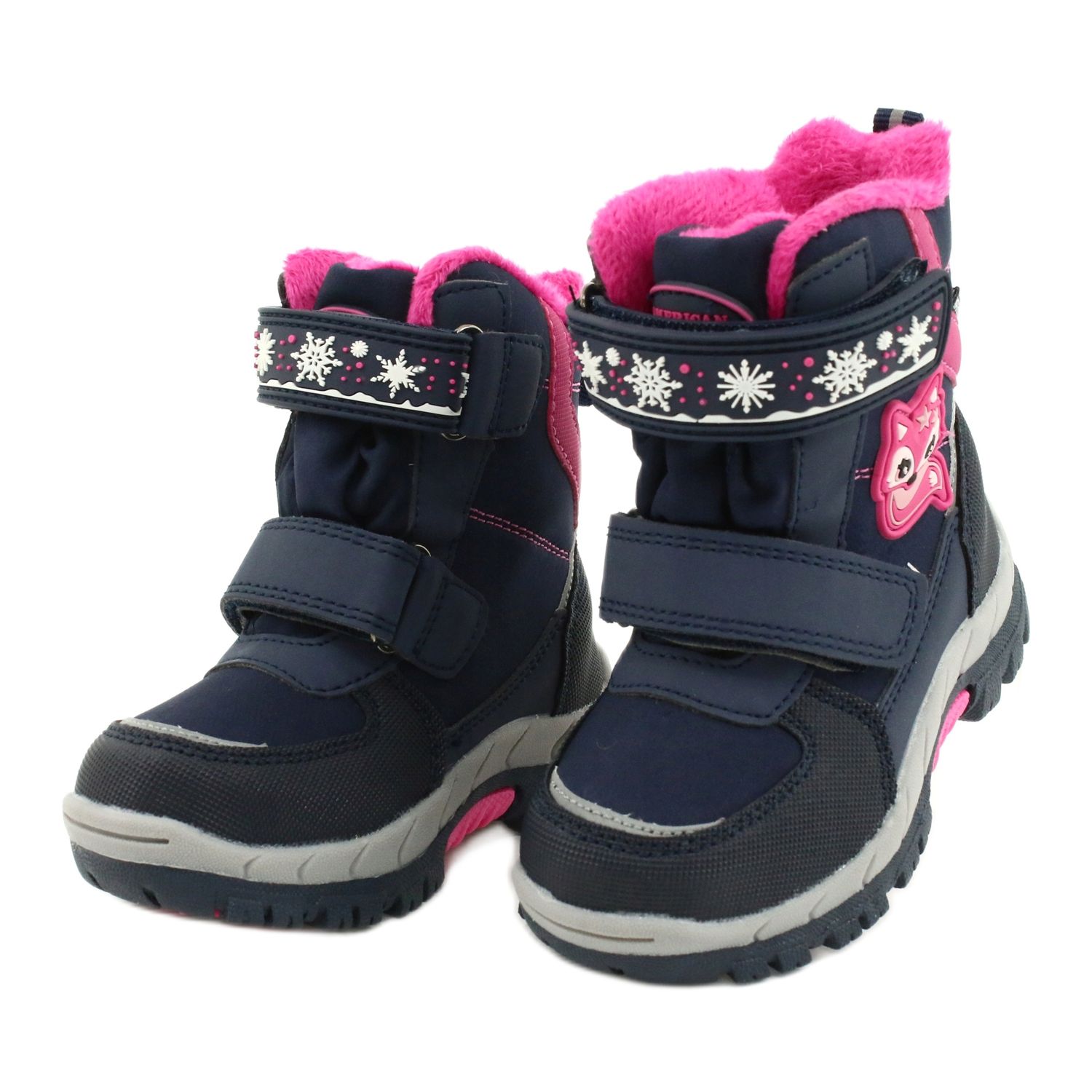 American Club-Stiefel sind in den attraktiven Farben Marineblau und Rosa erhältlich, die sicherlich vielen Mädchen gefallen werden. Der Klettverschluss erleichtert das An- und Ausziehen der Schuhe und der steife Absatz stabilisiert den Knöchel, was für aktive Kinder wichtig ist.