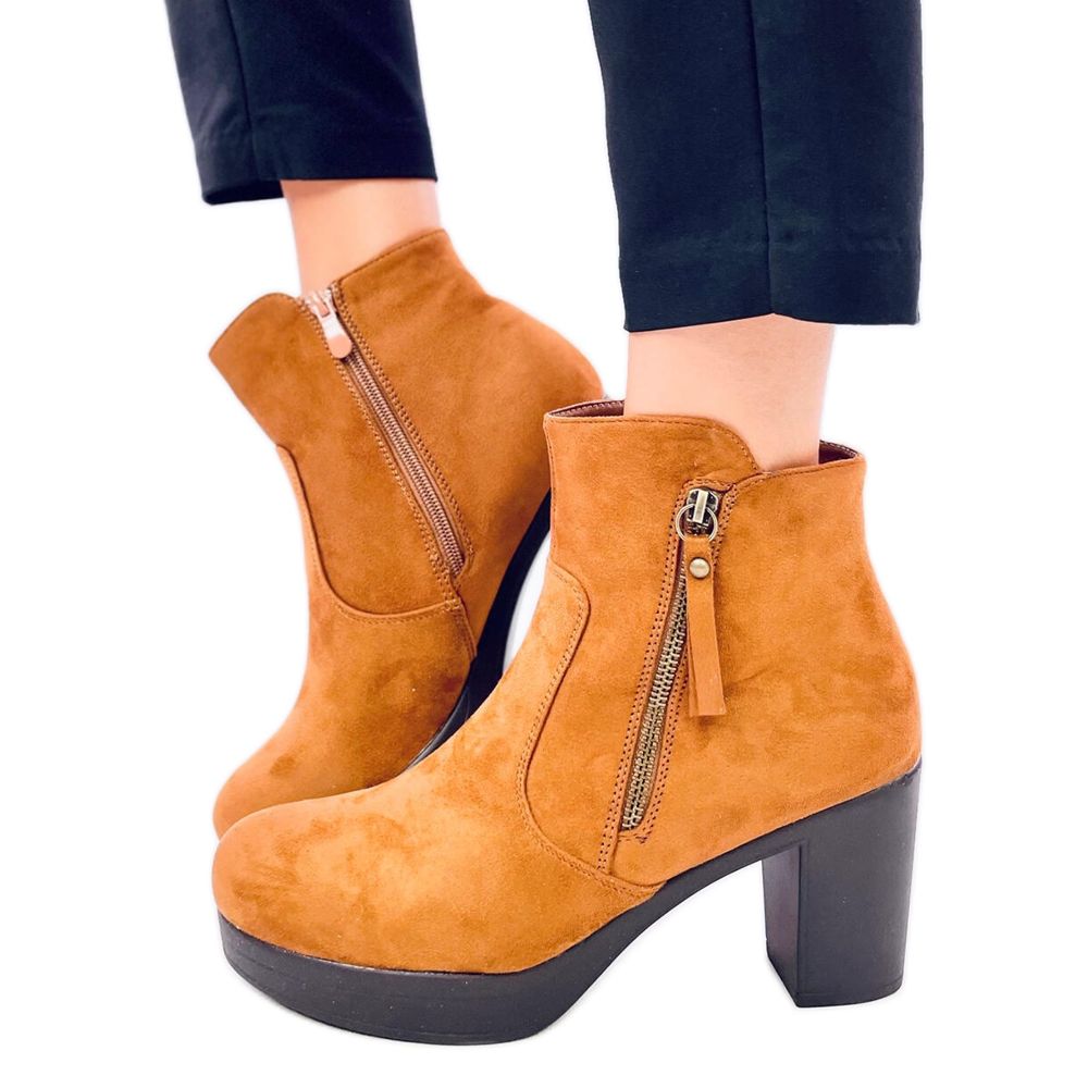 Americana Camel Stiefel - Klassische Wildleder -High Heels, die in vielen alltäglichen Stilisierungen arbeiten werden. Hergestellt aus ökologischem Wildleder auf einem Schaumstofffutter mit einem praktischen Reißverschluss, dank der Sie sie schnell und bequem anziehen können. Eine Kolbenferse mit einer Höhe von etwa 8 cm garantiert Stabilität und femininer Aussehen, und der Mandelzehen verleiht Eleganz.