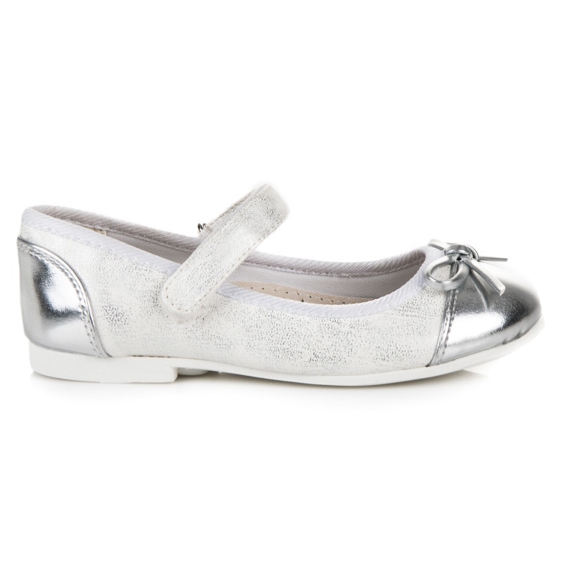 Zarte, elegante Ballerinas für Mädchen der Marke American Club. Die klassische graue Farbe mit Lackkappe verleiht den Schuhen einen schicken Look und macht sie gleichzeitig sowohl für den Alltag als auch für Familienfeiern geeignet.