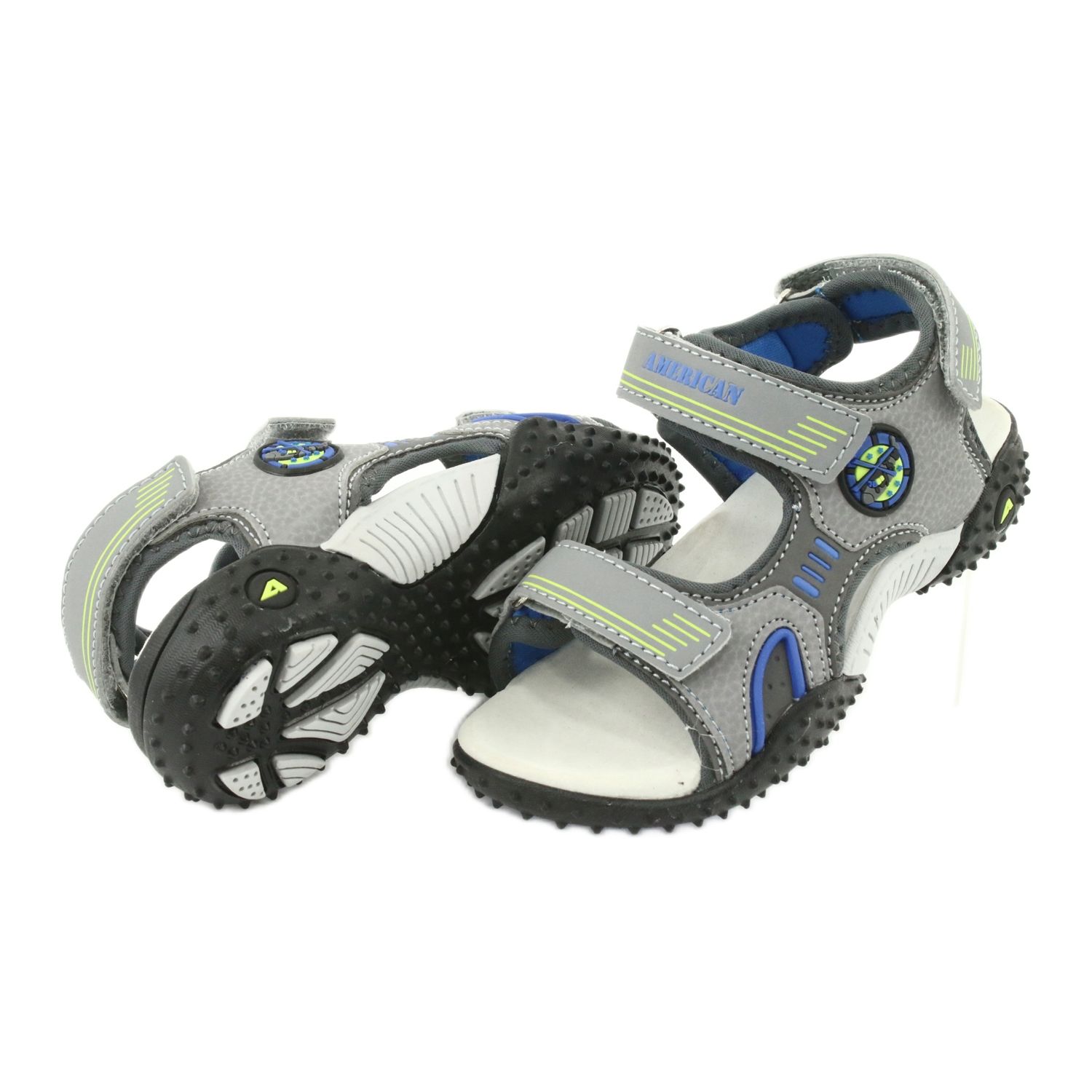 Ein leichtes, komfortables und stilvolles Angebot für wärmere Tage - American Club HL20/20 Sandalen kombinieren modernes Design mit funktionalen Lösungen. Die obere Herstellung einer neuen Generation synthetisches Material / ökologisches Leder ist langlebig und leicht zu reinigen, und eine klassische Kombination von Grau mit blauen Akzenten wird jeden Jungen ansprechen.