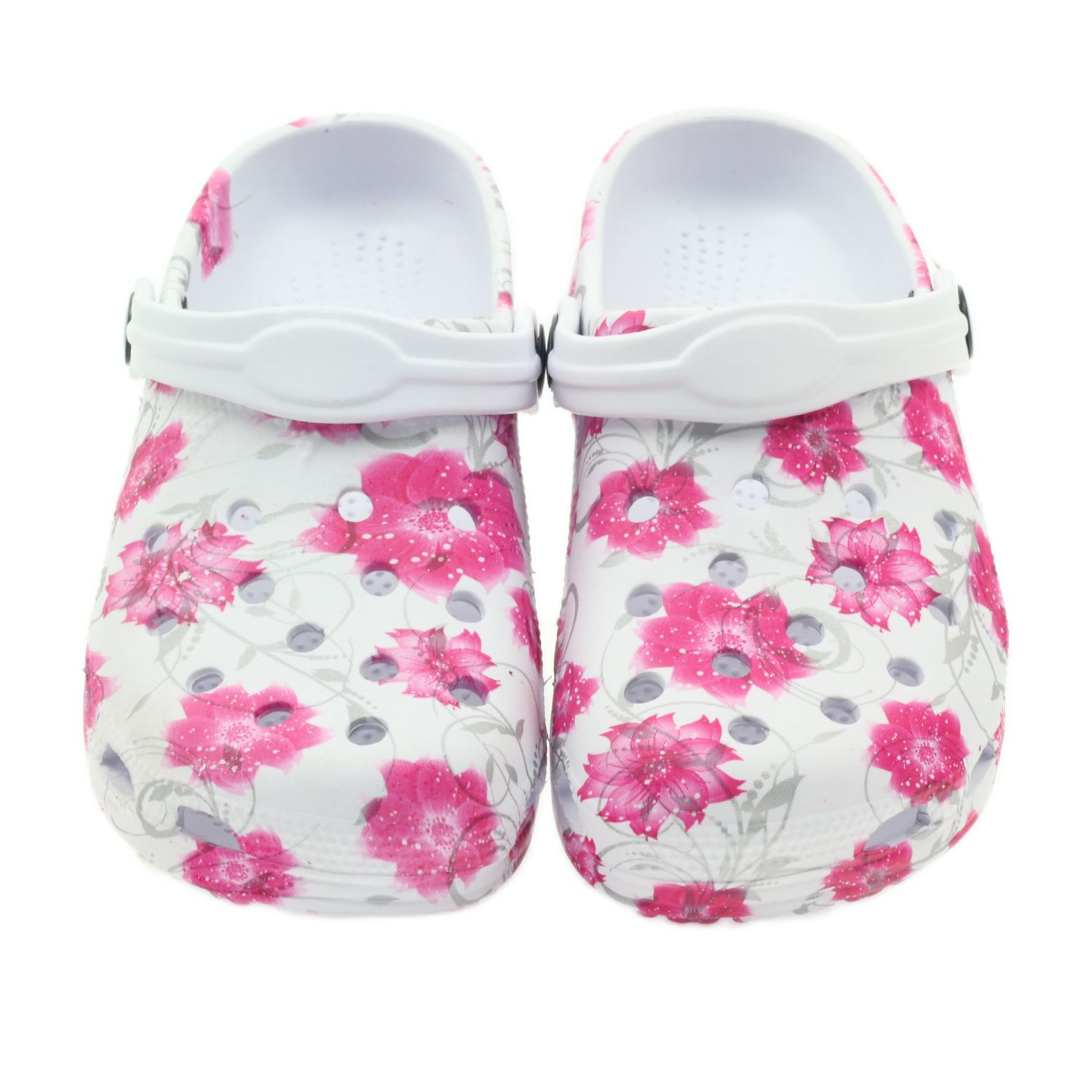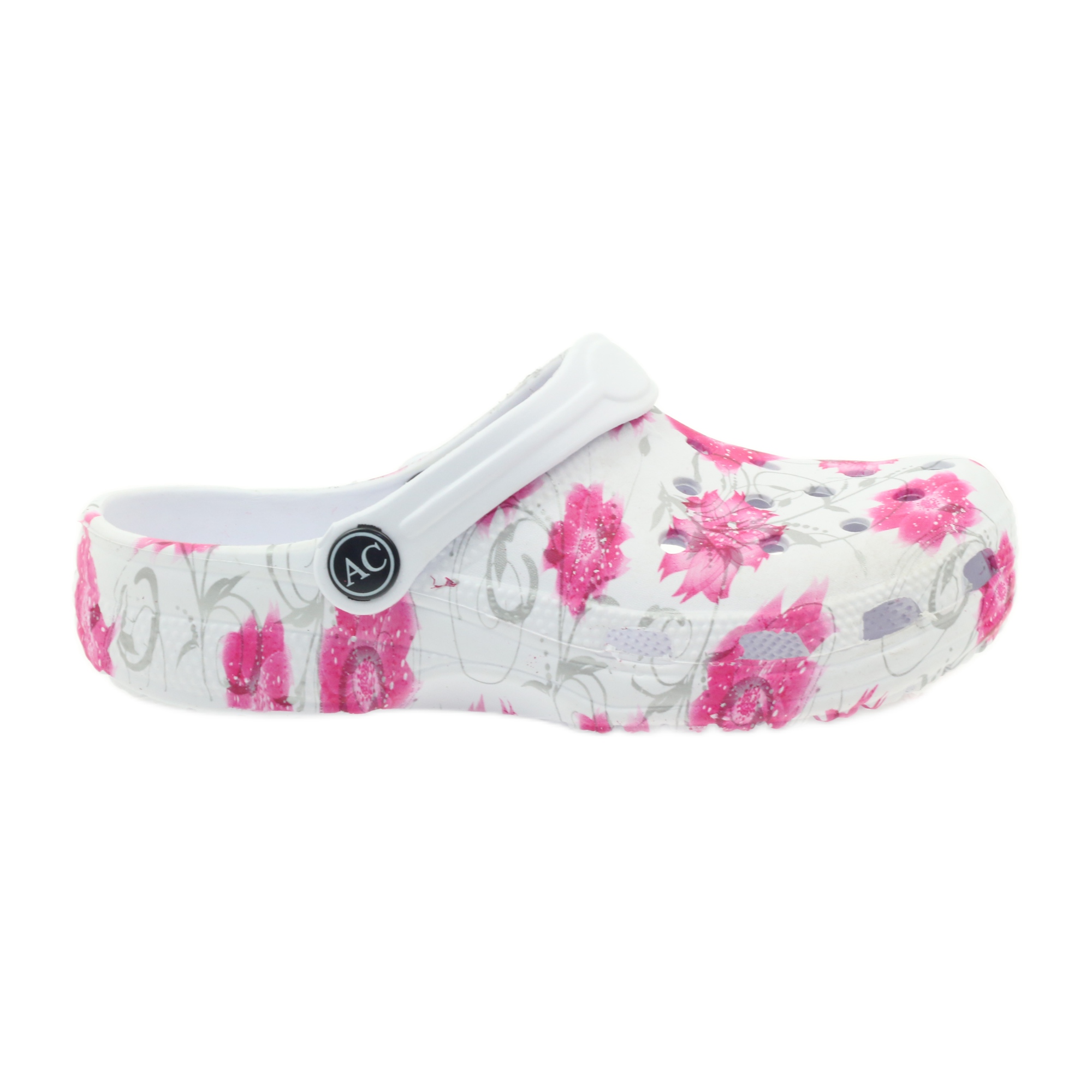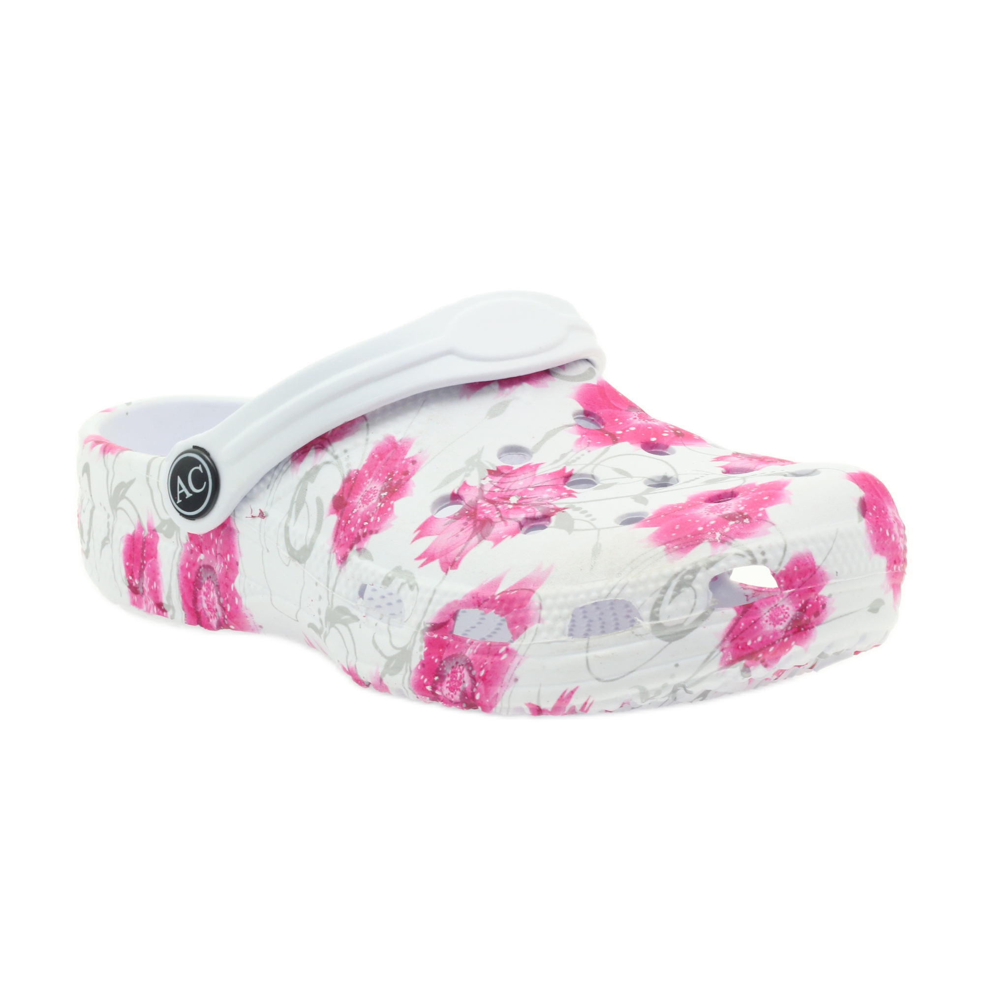 American Club American Club Amerikanische Kinderhausschuhe kroks Blumen weiß grau rosa