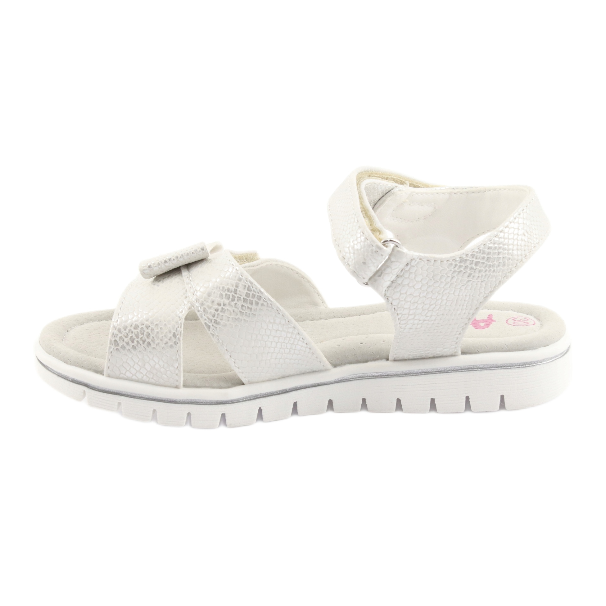 Elegante und bequeme Sandalen für Mädchen, die sich durch einen zarten Bogen und einen Perlenfarben auszeichnet. Die Kombination aus modernem Design mit funktionalen Lösungen sorgt für den Komfort, den ganzen Tag den ganzen Tag zu tragen - jeden Tag perfekt, für die Schule und für Sommerfeierlichkeiten.