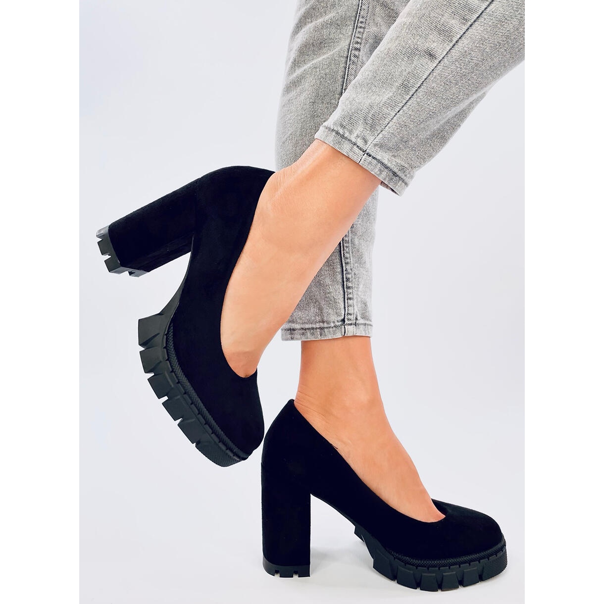 Die hochhackigen und Plateau-Pumps von Angela Black sind ein einzigartiges Angebot für jede Frau, die ihrem Styling Eleganz und Chic verleihen möchte. Aus hochwertigem ökologischem Wildleder gefertigt, fallen diese schwarzen Pumps durch ihr minimalistisches Design ins Auge. Die runde Nase und die glatte Oberfläche verleihen ihnen einen klassischen Charakter, perfekt für lässige und formellere Outfits.