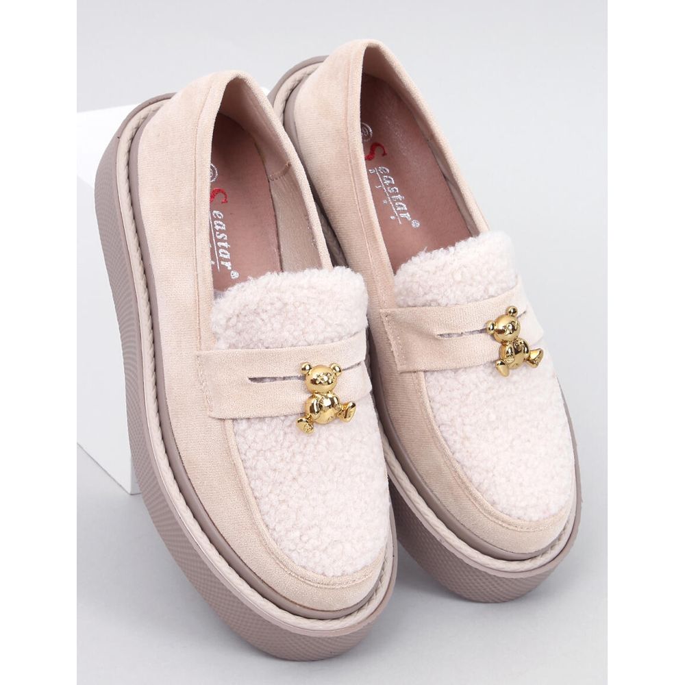 Inna marka Anisha Beige Plateau-Loafer mit Lammfell