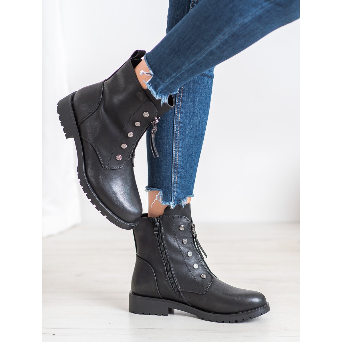 Wir präsentieren die außergewöhnlichen J. Star Workery Na Zipper Stiefel in klassischem Schwarz, die eine perfekte Wahl für Frauen sind, die Wert auf modischen Stil und Komfort legen. Diese eleganten Schuhe zeichnen sich durch ihren lässigen und rockigen Charakter aus und passen perfekt zur kommenden Herbst-/Wintersaison.