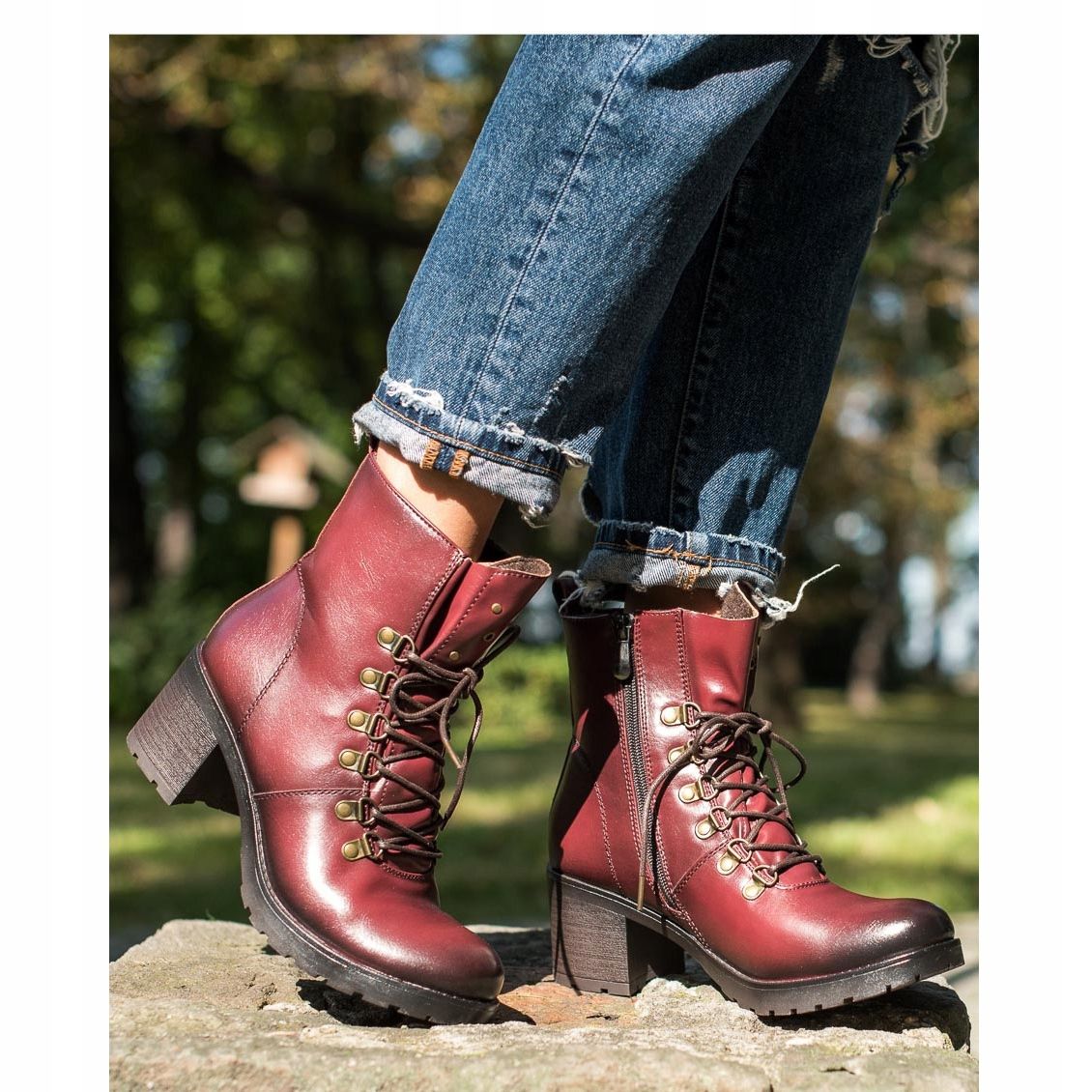 Das Markenzeichen dieser Schuhe ist ein mittelhoher Absatz von 6,5 cm, der die weibliche Figur dezent betont und gleichzeitig für Stabilität beim Gehen sorgt. Der Schnürverschluss und ein zusätzlicher Reißverschluss ermöglichen ein schnelles und bequemes Anziehen.