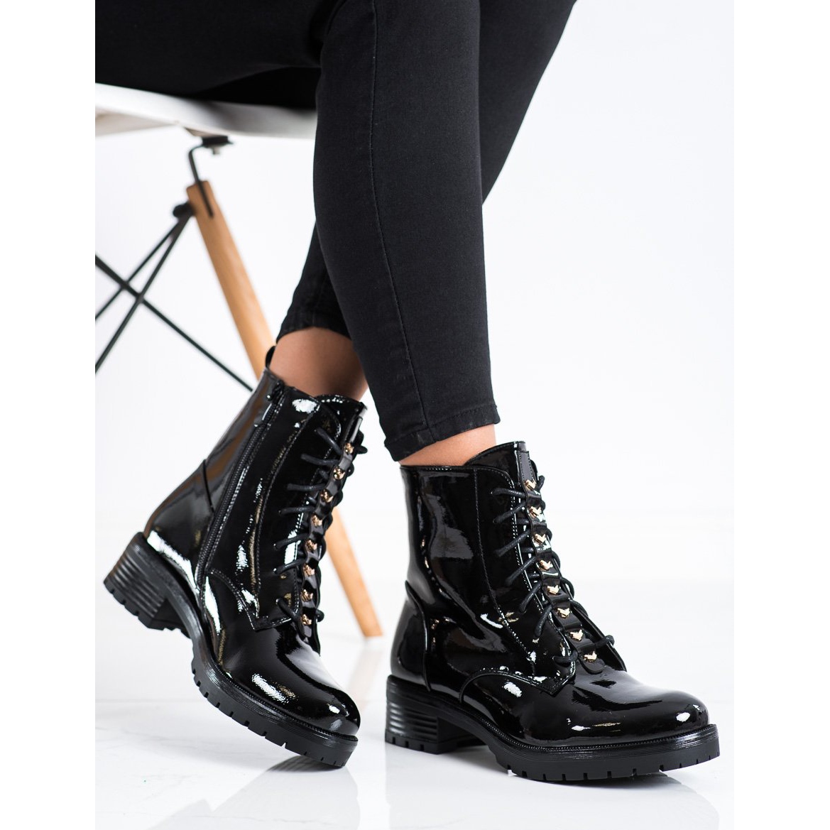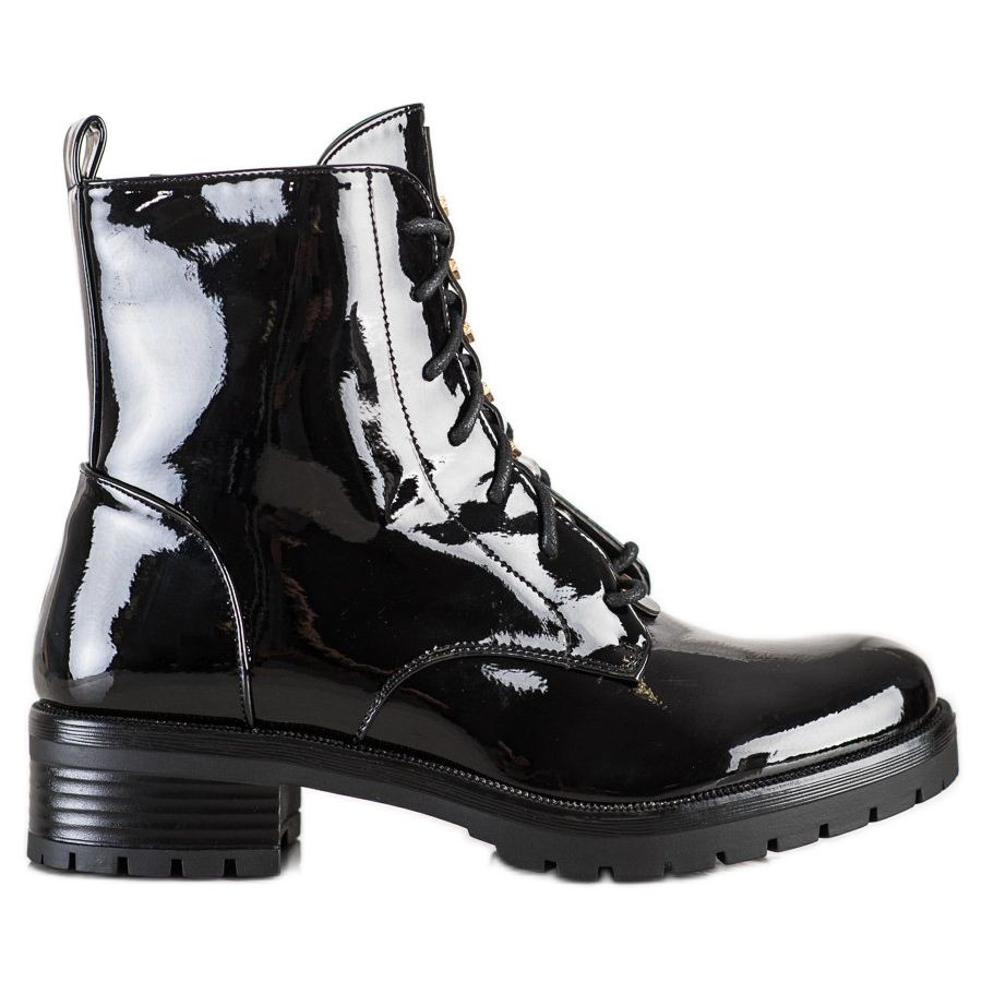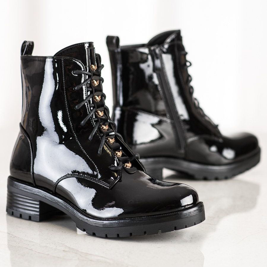 S. BARSKI Worker aus Öko-Lackleder sind die perfekte Wahl für Frauen, die Wert auf Stil und Komfort legen. Diese schwarzen Stiefeletten vereinen lässigen, rockigen und modischen Stil und eignen sich daher perfekt für den Alltag und verschiedene Anlässe.
