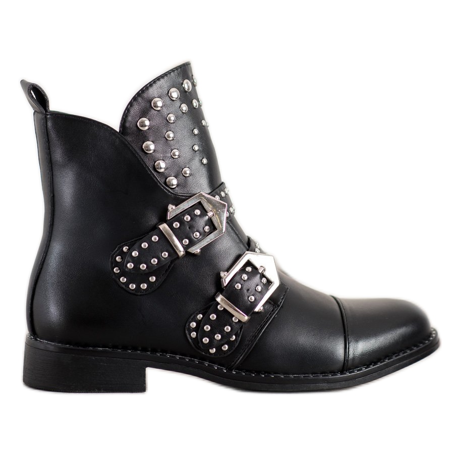 Sie bestehen aus hochwertigem ökologischem Leder und zeichnen sich durch dekorative Schnallen und silberne Strasssteine aus, die ihnen einen einzigartigen Charakter verleihen. Die Schafthöhe von 13-14 cm und ein weicher, eingearbeiteter Absatz sorgen für perfekte Passform und Tragekomfort.