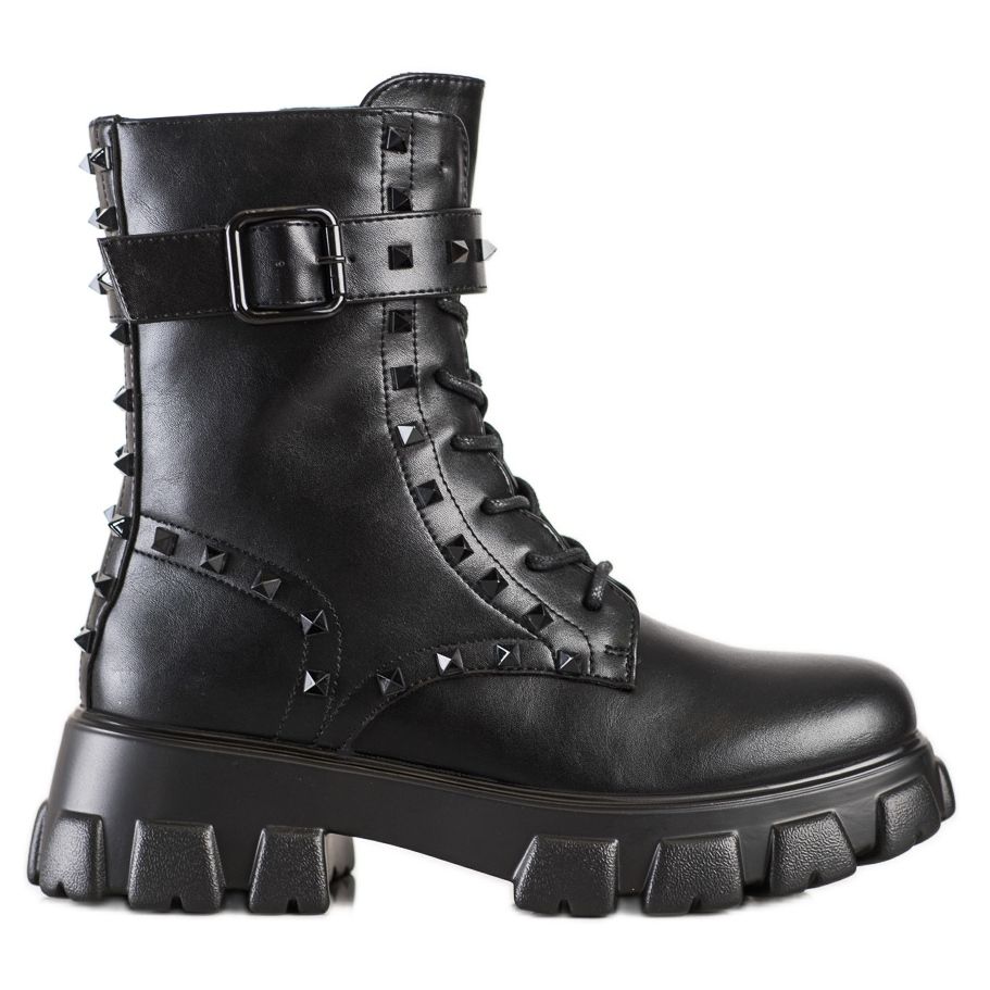 Entdecken Sie einzigartige Worker von Erynn, die Stil und Komfort vereinen. Diese schwarzen Stiefel, verziert mit eleganten schwarzen Nieten, sind die perfekte Wahl für Frauen, die Wert auf einen modischen Look und Alltagskomfort legen. Hochwertiges Außenmaterial aus ökologischem Leder sorgt für Langlebigkeit und ästhetische Optik, die Innenausstattung aus textilem Material garantiert Tragekomfort.