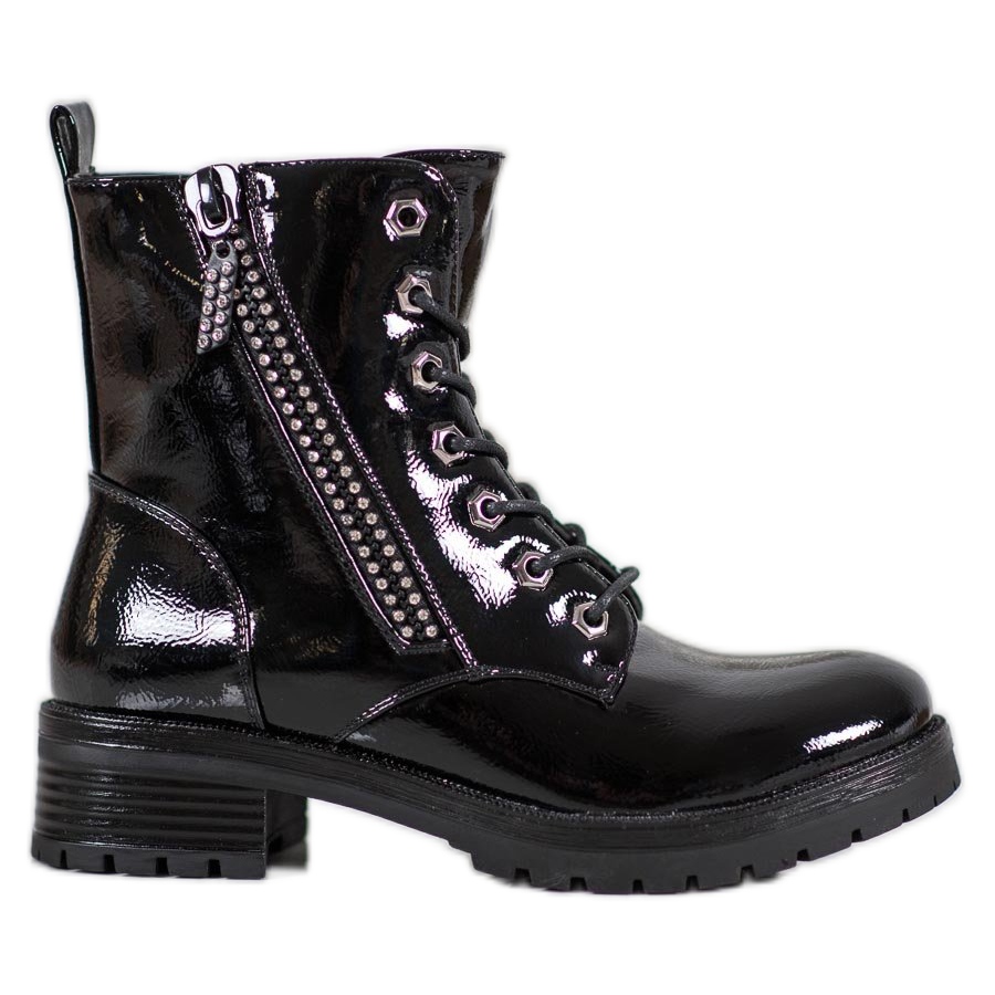 Wir präsentieren einzigartige Arbeiter der Marke SHELOVET, die rockigen Stil mit elegantem Finish verbinden. Diese schwarzen Schuhe mit glänzender Oberfläche sind die perfekte Wahl für Frauen, die sich von der Masse abheben möchten.