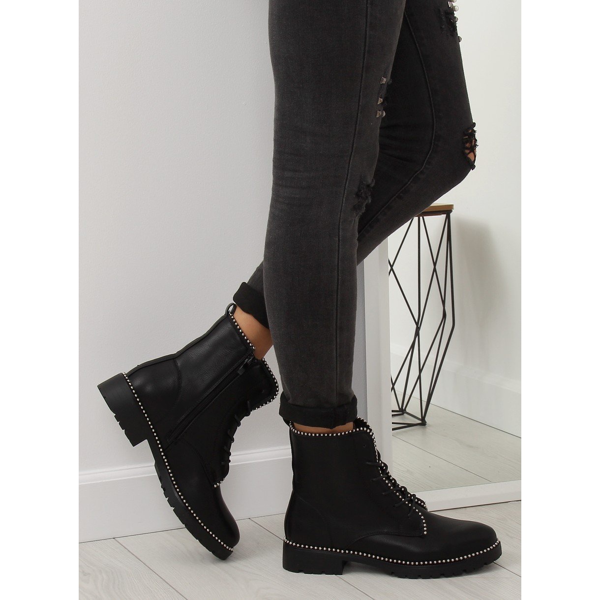 Dies ist die perfekte Wahl für Frauen, die Mode mit Komfort kombinieren möchten – schwarze Worky 2577 schwarze Stiefeletten. Diese Schnürstiefeletten zeichnen sich durch moderne Details aus, darunter ein modisches Finish mit silbernen Kugeln, die ihnen einen einzigartigen Charakter verleihen.