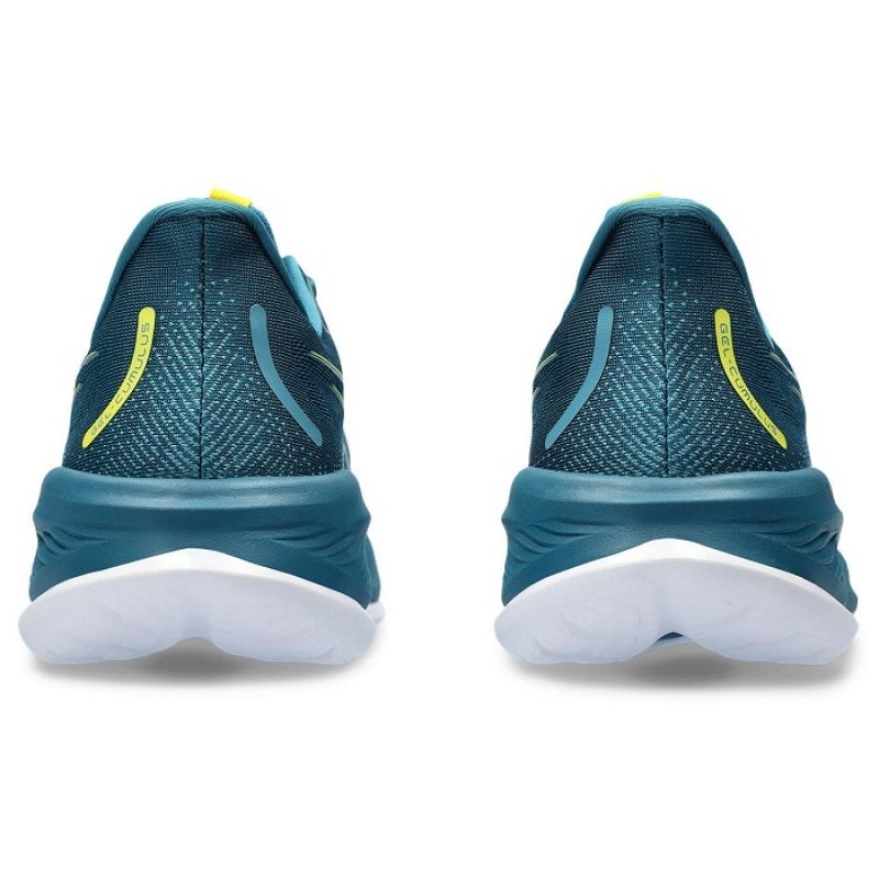 ASICS Gel Cumulus 26 Schuhe sind auf der Grundlage vieler Tests am Institute of Sport Sciences in Japan eine ideale Wahl für Männer, die sowohl Stil als auch Funktionalität schätzen. Die hervorragende türkisfarbene Farbe mit gelben Akzenten fällt ins Auge, und ihr modernes Design passt zu jeder sportlichen Stylisierung.