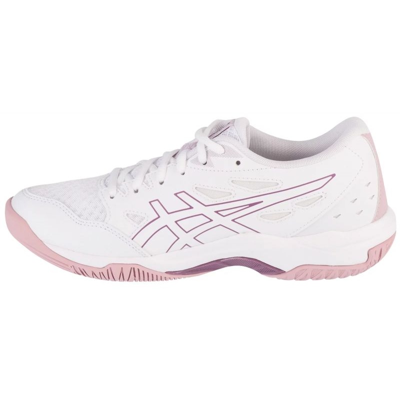 Asics Gel-Rocket 11 Volleyballschuhe (Modell 1072A093-103) in klassischem Weiß mit rosa Accessoires sind die perfekte Wahl für aktive Frauen, die beim Training auf dem Hallenplatz Komfort mit hoher Leistung kombinieren möchten. Diese niedrigen Sportschuhe bieten hervorragenden Halt und Flexibilität, was bei dynamischen Spielen wie Volleyball oder Squash äußerst wichtig ist.