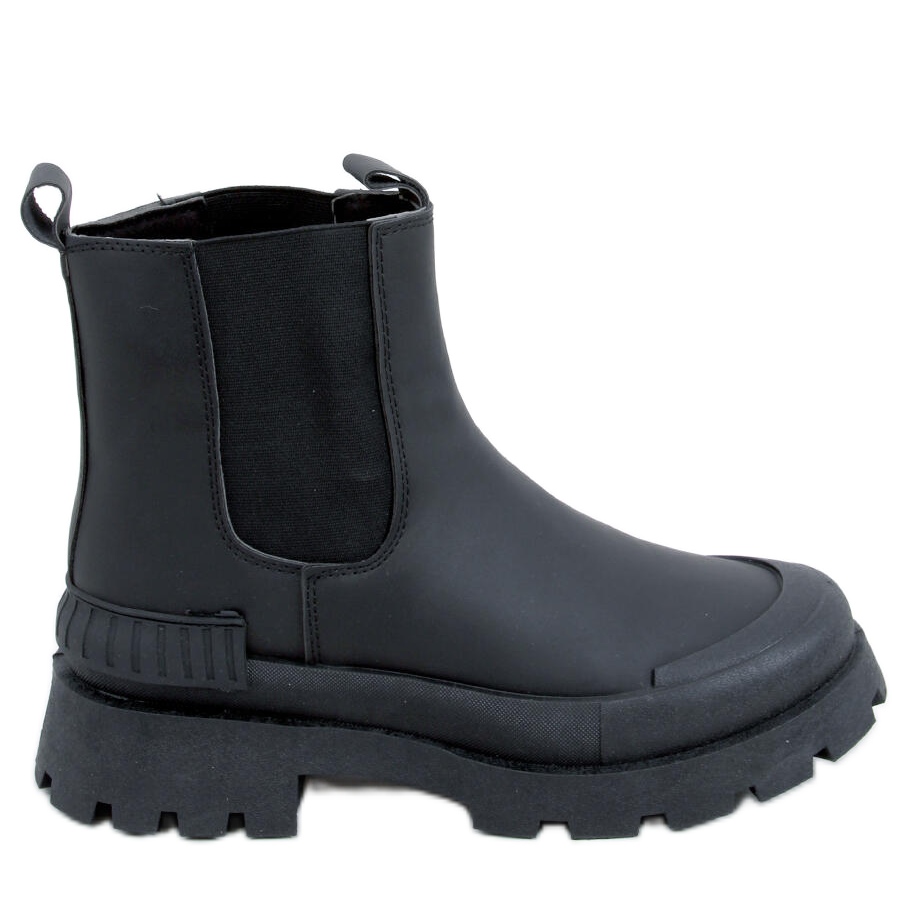 Klassische Chelats in einer modernen Ausgabe: Schwarzes, mattes Finish aus ökologischem Leder, flexible Einsätze an den Seiten und dicker, Designersohle (Plattformhöhe/Absatz 4 cm). Astoria Black Models kombinieren einen zeitlosen Schnitt mit dem Komfort der Schaumstofffutter und der Slip -In -Konstruktion - perfekt für alltägliche Stylisationen.