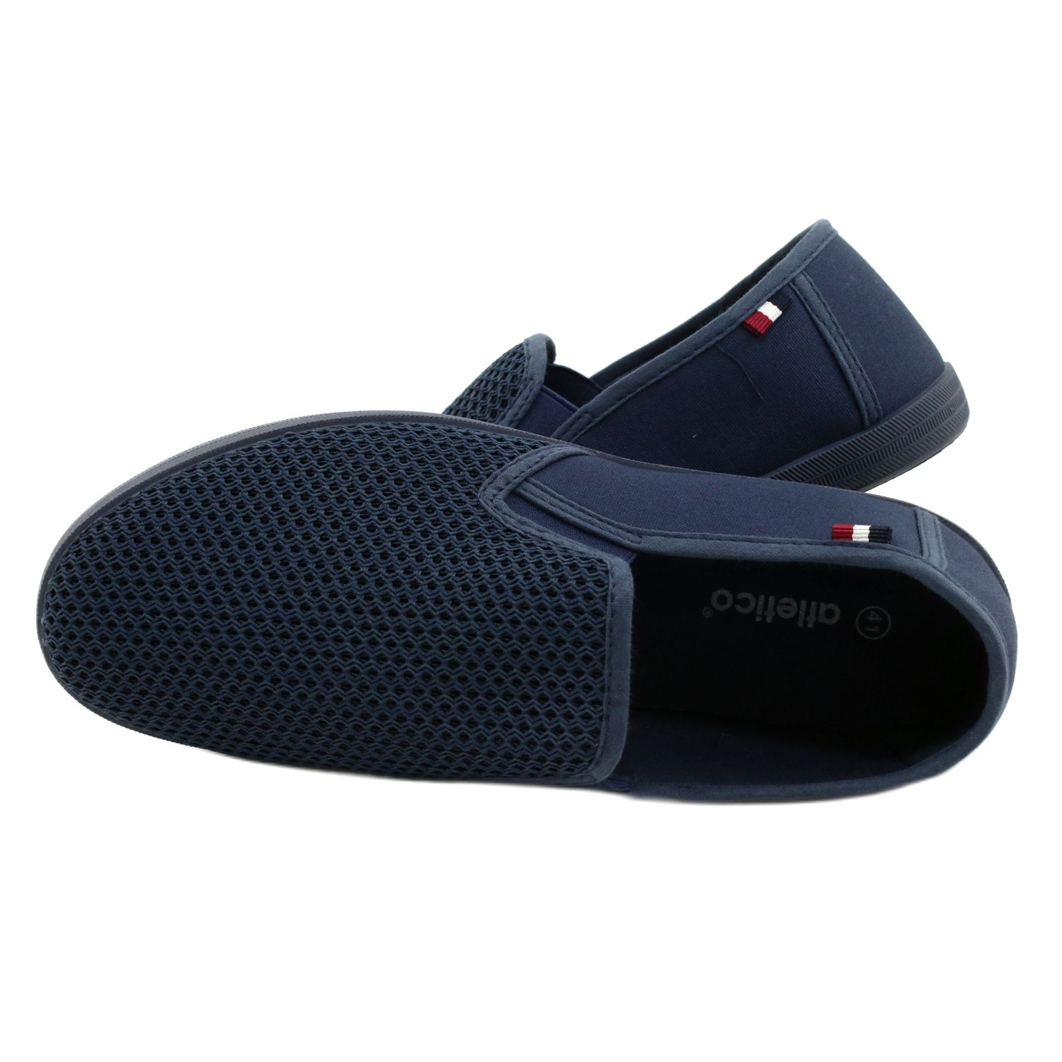 Minimalistische, leichte und atmungsaktive Einfügung von Atletico -Turnschuhen in L.Navy (Marine). Entworfen für Benutzerkomfort - vollständig aus hautfreundlicher Stoff mit einer offenen Arbeitsstruktur mit flexiblen Elastik an den Seiten für eine bessere Passform. Die flexible Gummi -Sohle funktioniert während Spaziergängen im städtischen Gebiet, und die niedrige Verarbeitung und ein einfacher, absoluter Schnitt machen sie zu einer universellen Ergänzung zu lässigen Stilisierungen.