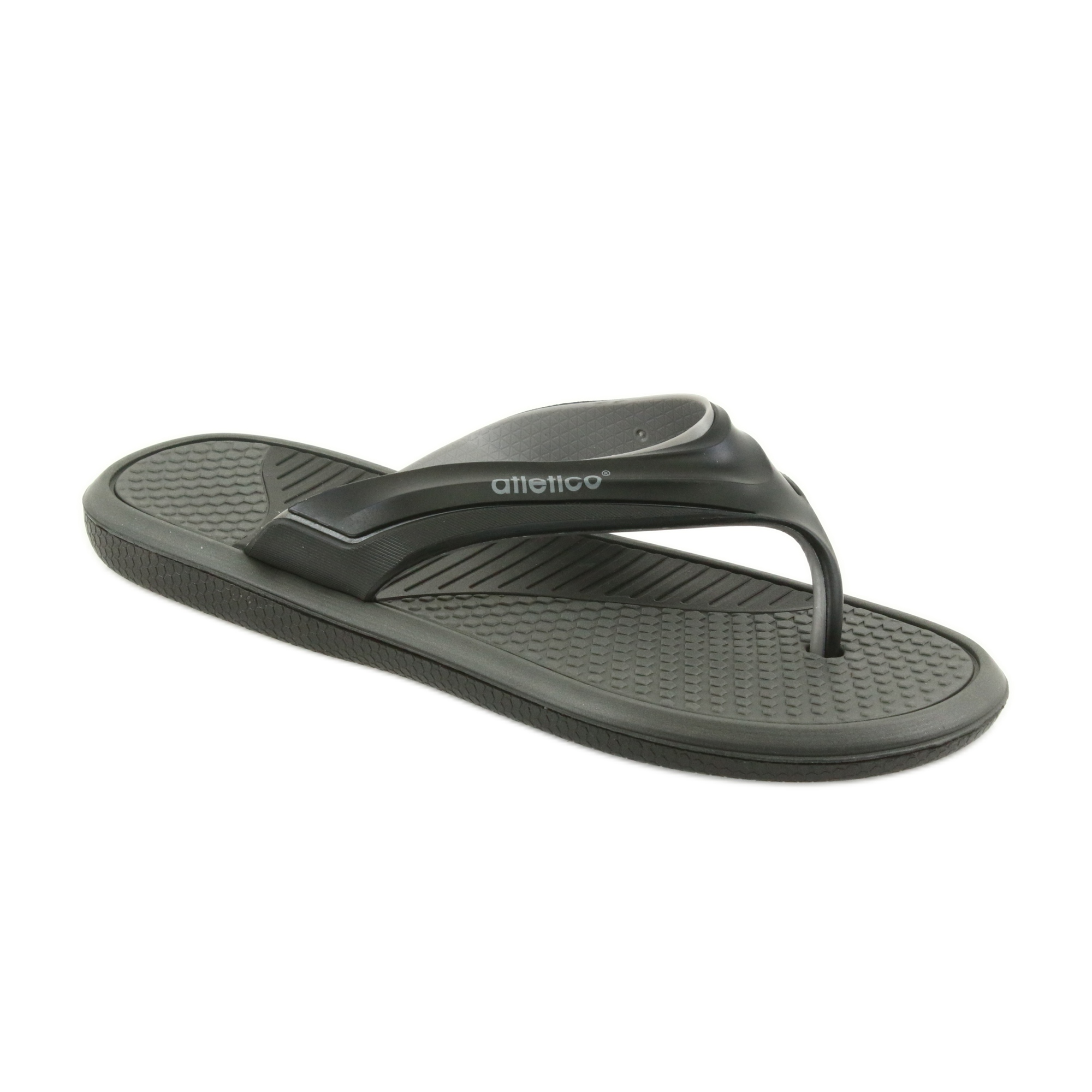 Die schwarzen Atletico-zehenstegsandalen für Herren sind die perfekte Wahl für alle Männer, die Wert auf Komfort und modernes Design legen. Diese stilvollen zehenstegsandalen in dominantem Schwarz mit grauen Akzenten eignen sich sowohl für das Schwimmbad als auch für den täglichen Gebrauch zu Hause oder bei Sommerspaziergängen.