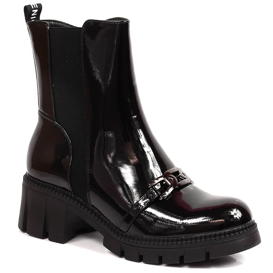 Lackstiefeletten mit Block und Plateau mit Kette von Potocki sind die perfekte Wahl für Frauen, die Wert auf Eleganz und Komfort legen. Aus hochwertigem ökologischem Leder gefertigt, sehen sie äußerst stilvoll und modisch aus und ihre lackierte Oberfläche verleiht ihnen einen einzigartigen Charakter.