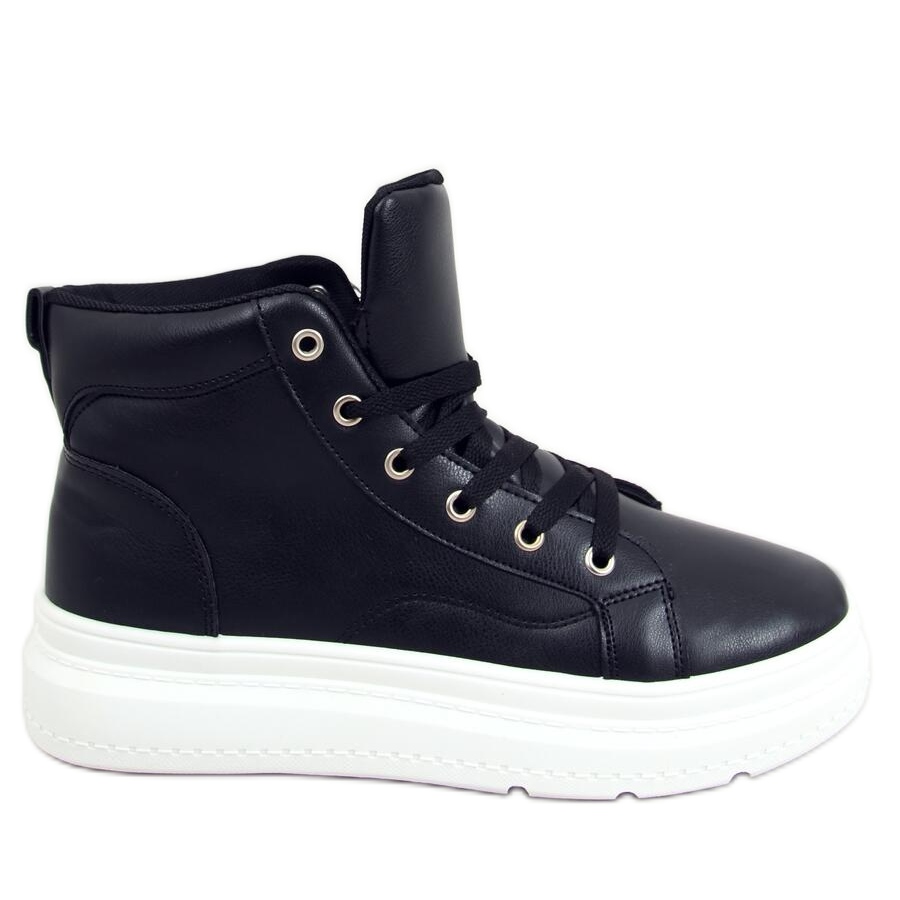 Ava Black Sneakers - stilvoll, komfortabel und für jeden Anlass. Der schwarze, glatte Schnitt aus ökologischem Leder passt gut zu alltäglichen und städtischen Stilisationen, und die hohe weiße Sohle mit einer Höhe von 4,5 cm verleiht ein paar Zentimeter und zieht Looks an. Die klassische Schnürung sorgt für eine perfekte Passform, und der mit Stoff ausgekleidete Innenraum garantiert den ganzen Tag den Komfort.