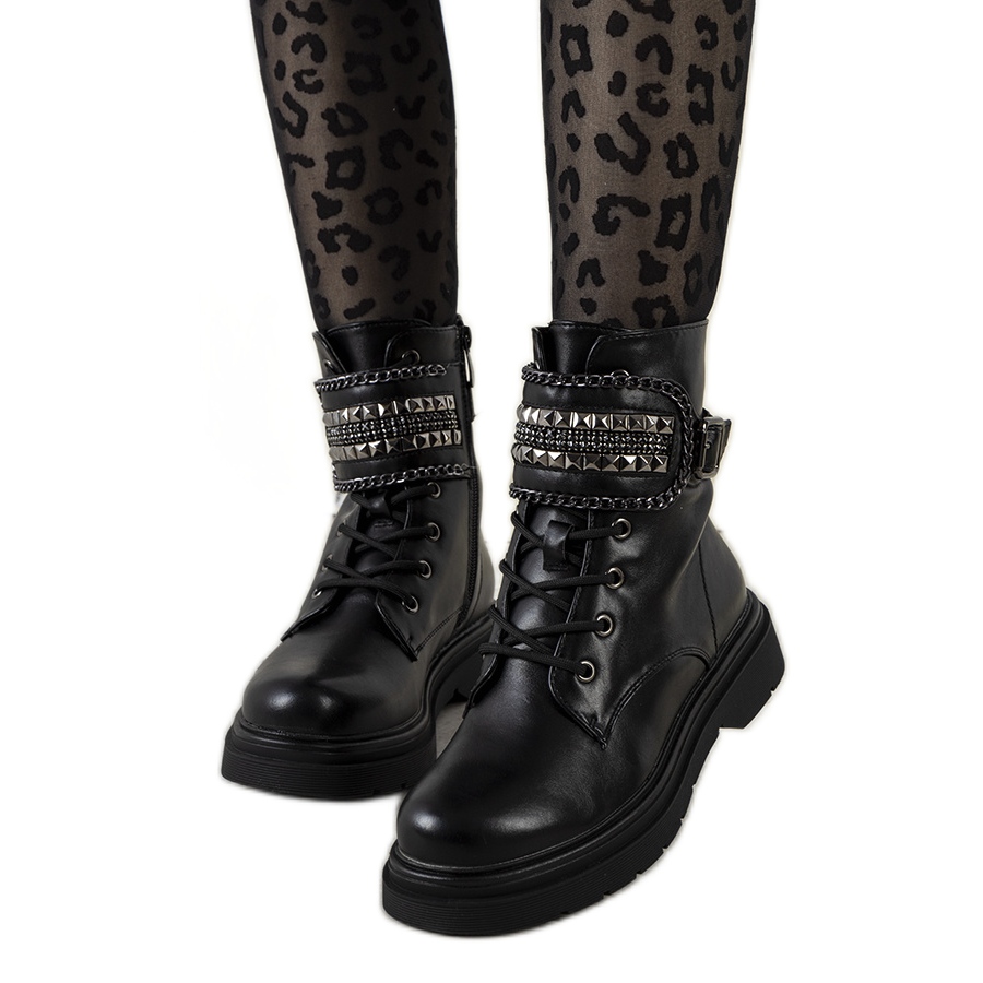 Avenida-Stiefeletten zeichnen sich durch eine runde Spitze und ein breites, 4 cm hohes Plateau aus, was ihnen einen einzigartigen Charakter verleiht. Darüber hinaus sind modische Nieten ein interessanter Akzent, der Ihre Individualität unterstreicht. Der Reißverschluss und der Schnürverschluss sind praktische Lösungen, die das Anziehen und die Anpassung an den Fuß erleichtern.