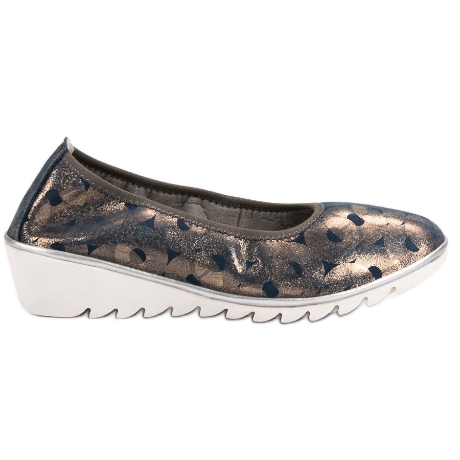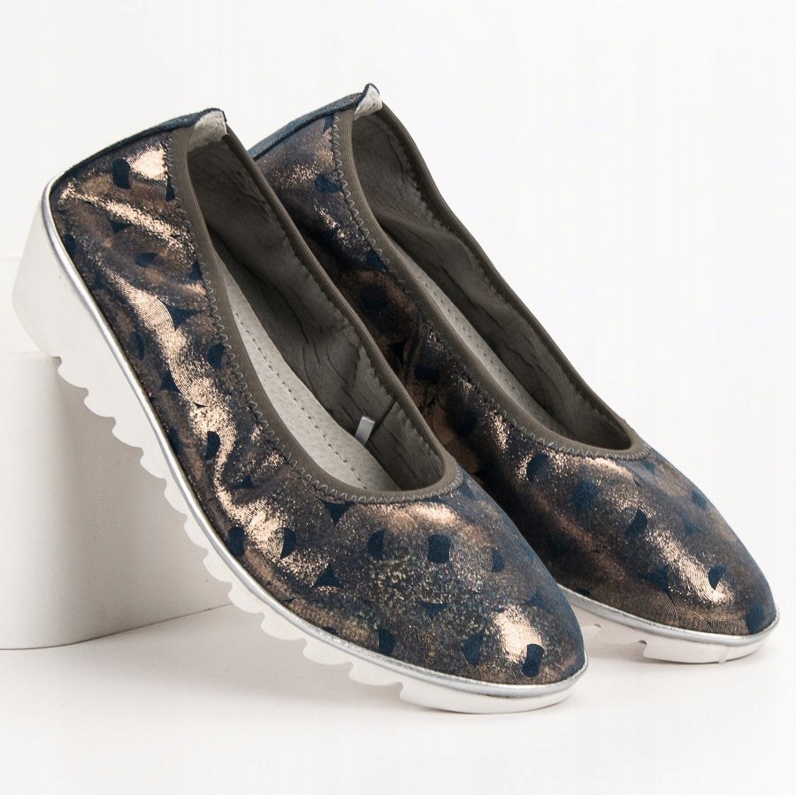 Diese Ballerinas verfügen über einen Slip-on-Verschluss, der das An- und Ausziehen erleichtert. Dank des eingearbeiteten, weichen Absatzes ist jeder Schritt in diesen Schuhen ein reines Vergnügen. Die Keilhöhe beträgt 4 cm, was für Tragekomfort sorgt und gleichzeitig die Beine optisch verlängert.