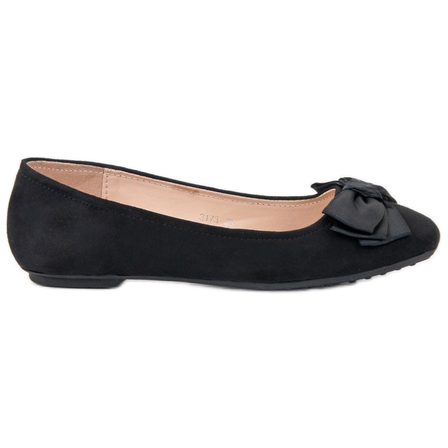 Wir präsentieren schwarze Ballerinas mit Schleife von Nio Nio, die eine ausgezeichnete Wahl für Frauen sind, die Wert auf Komfort und Stil legen. Diese klassischen Schuhe aus umweltfreundlichem Wildleder vereinen Eleganz mit einem modernen Modeansatz.