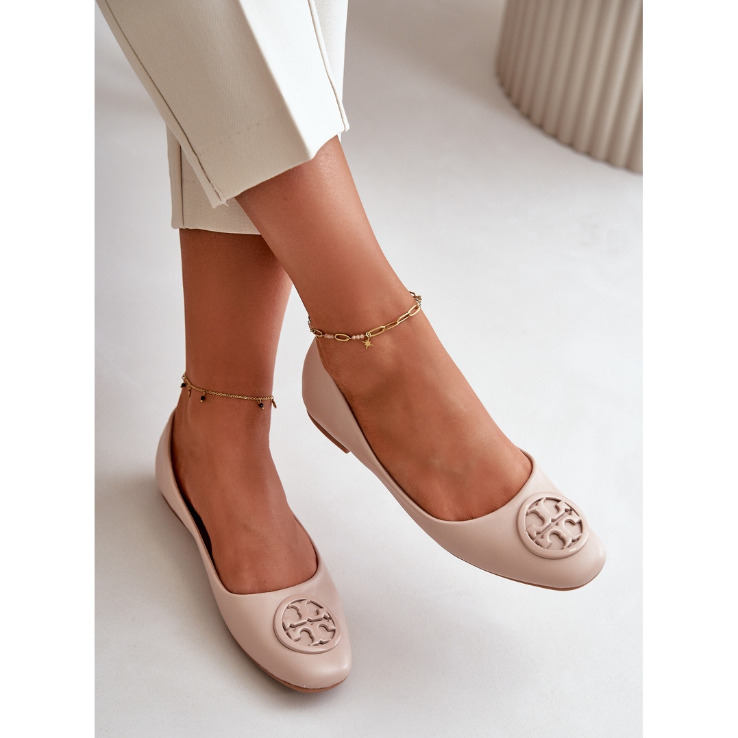 Inna marka Ballerina-Schuhe für Damen mit beigefarbener Rhodike-Öko-Lederverzierung