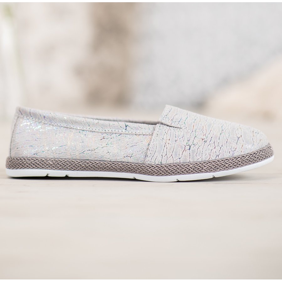 Entdecken Sie Eleganz und Komfort in jeder Situation mit den grauen Ballerinas von Goodin mit Holo-Effekt. Aus hochwertigem Naturleder gefertigt, vereinen diese Damenschuhe lässigen Stil mit modischem Finish. Ihr einzigartiges Design, angereichert mit einem gewebten grauen Streifen entlang der Sohle, zieht die Aufmerksamkeit auf sich und verleiht jedem Styling Leichtigkeit.